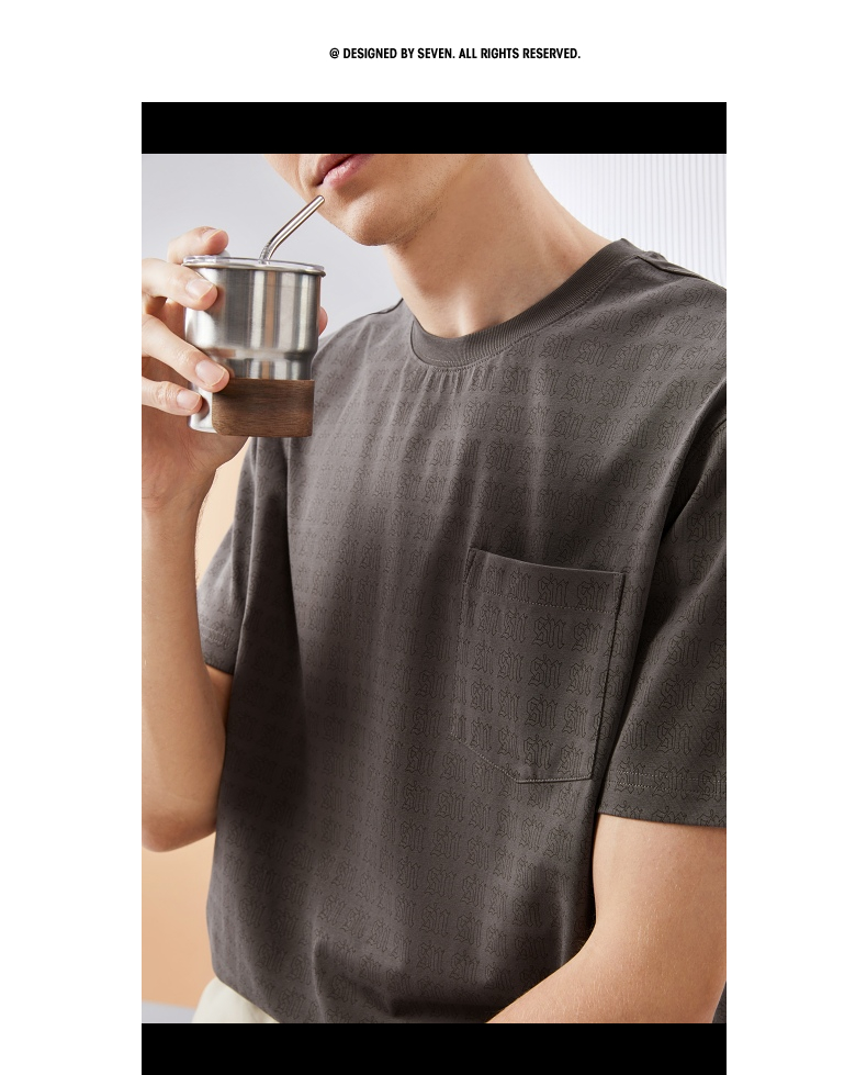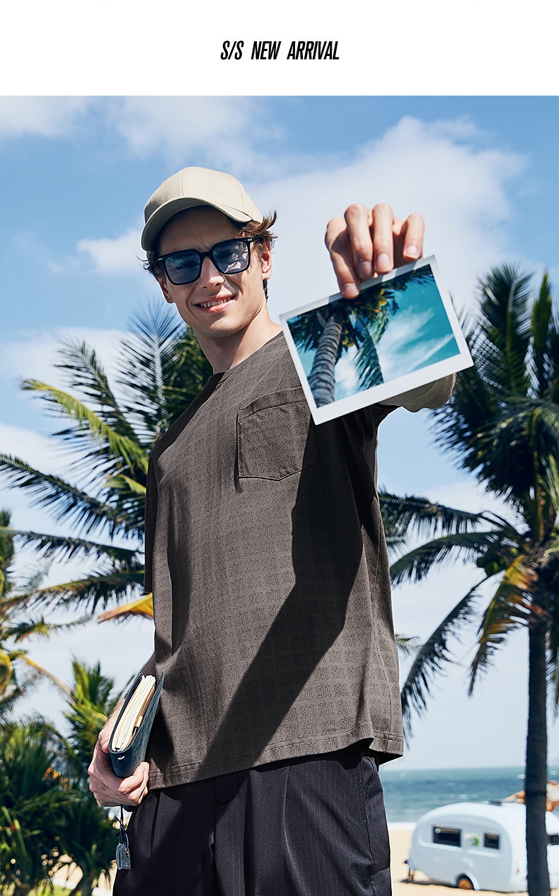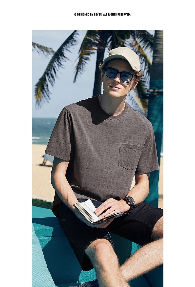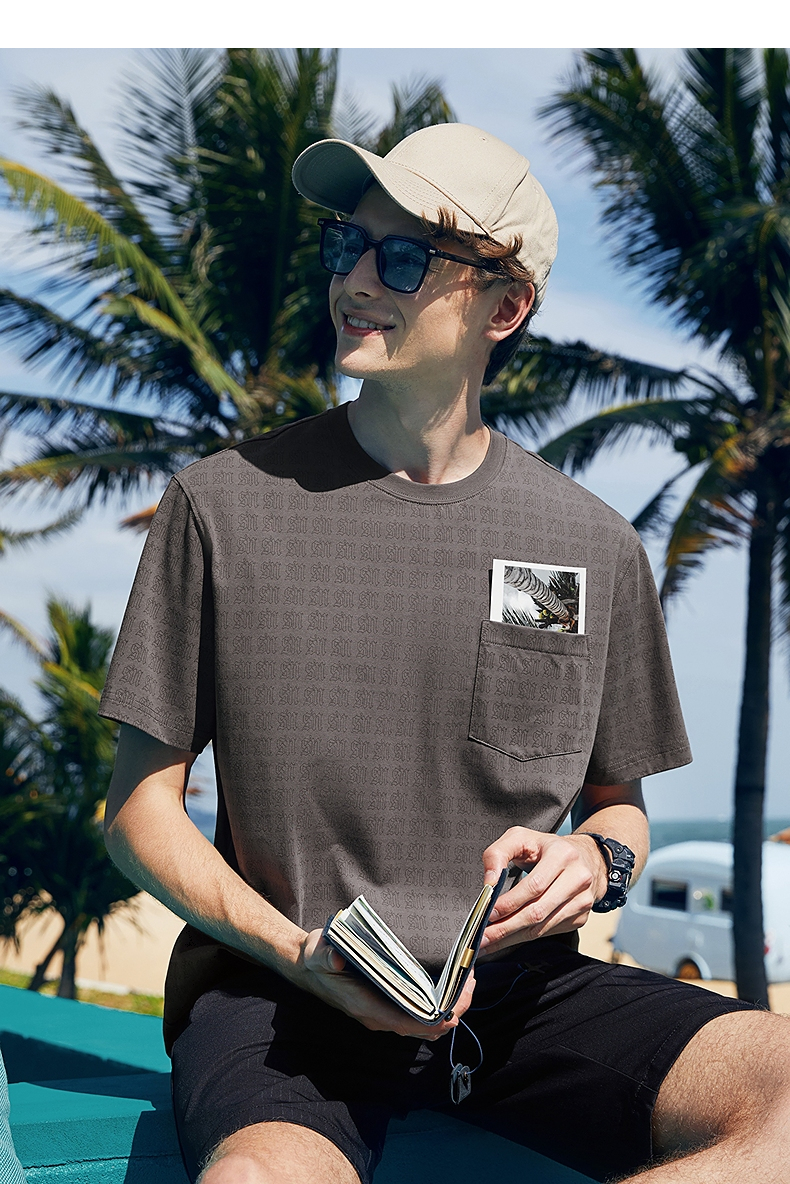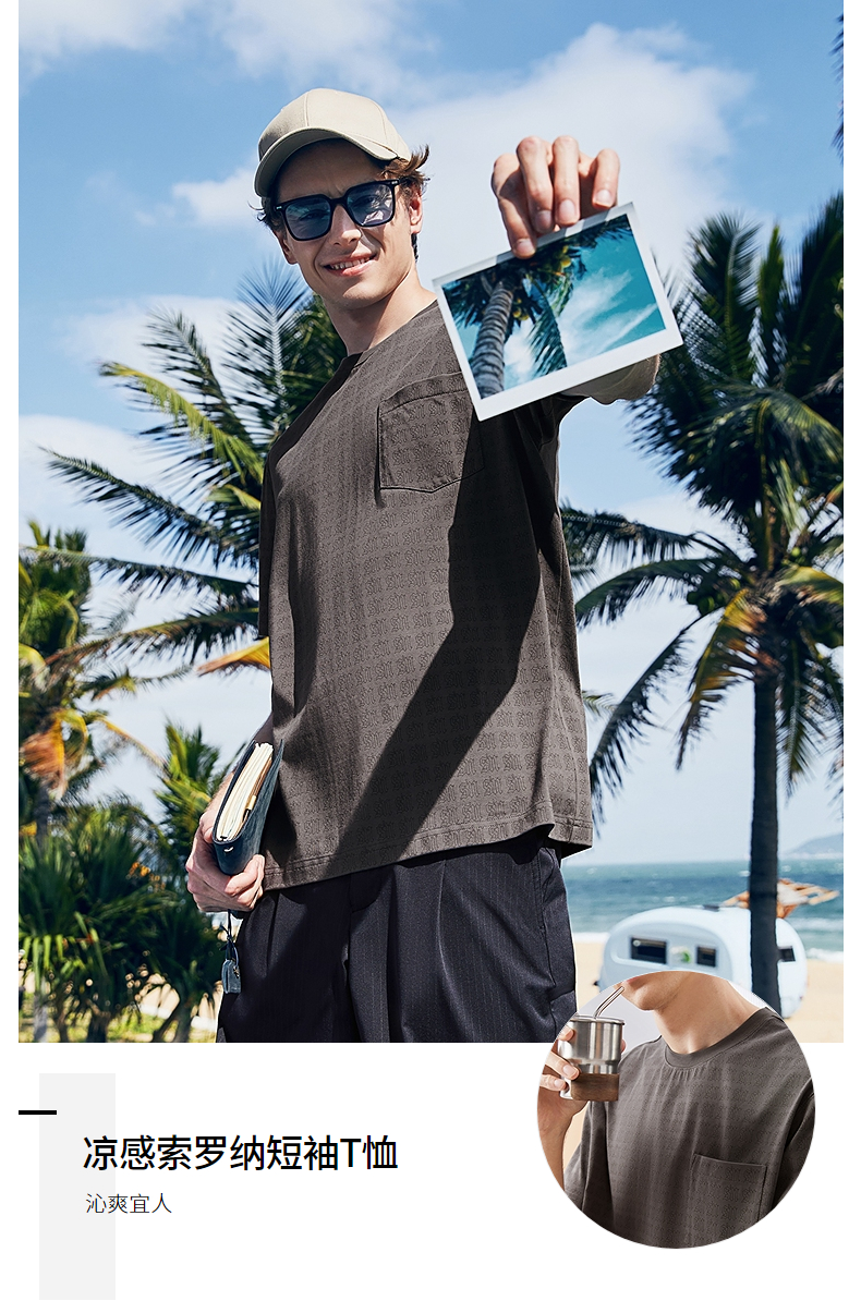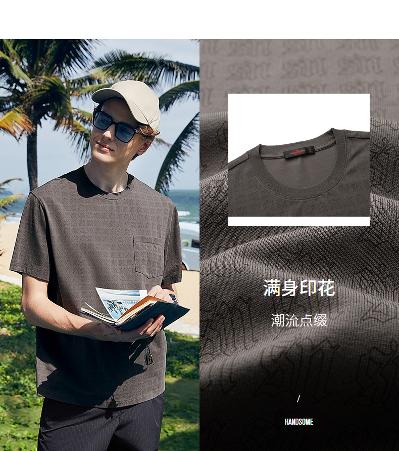 【凉感索罗纳】柒牌圆领短袖T恤男夏季新款时尚字母满印口袋上衣 126T71830