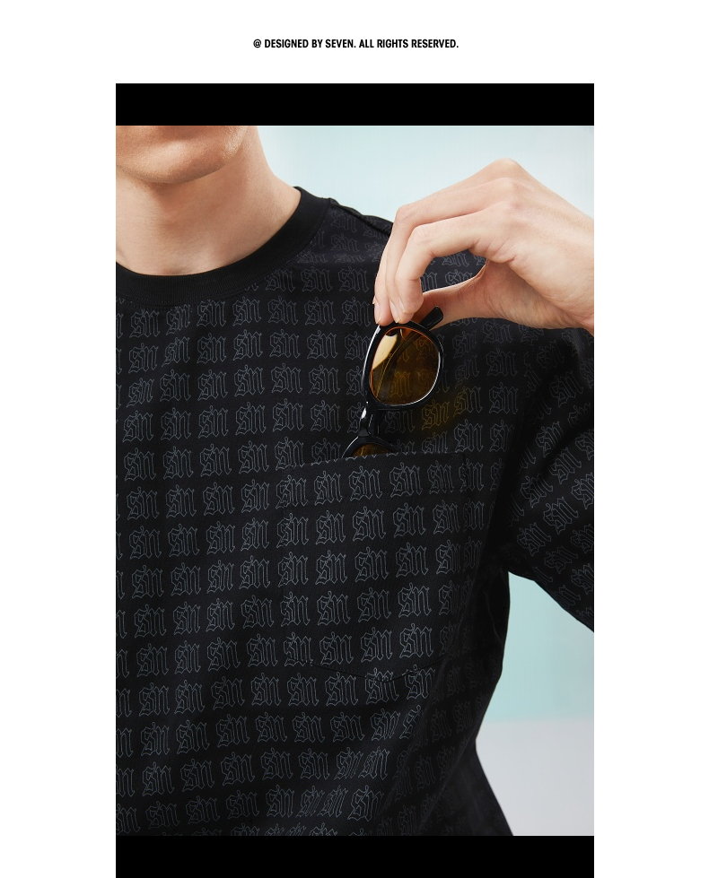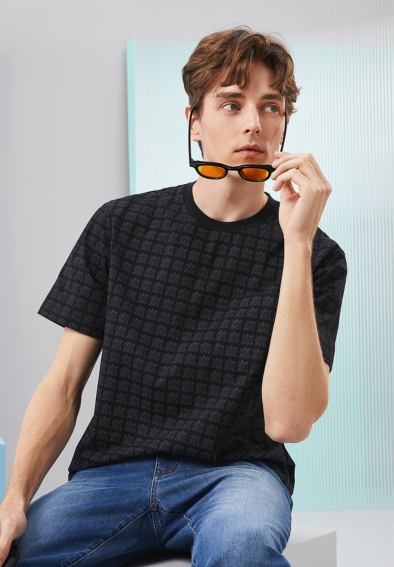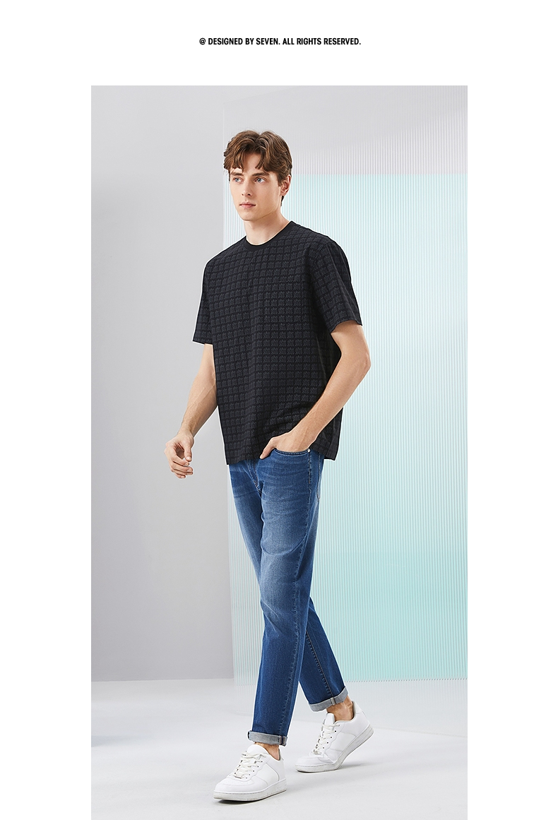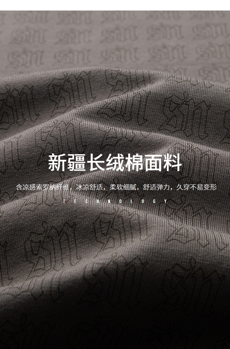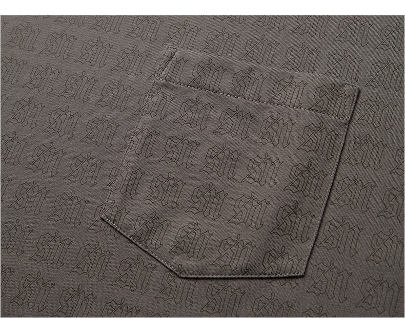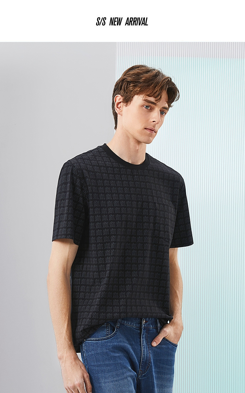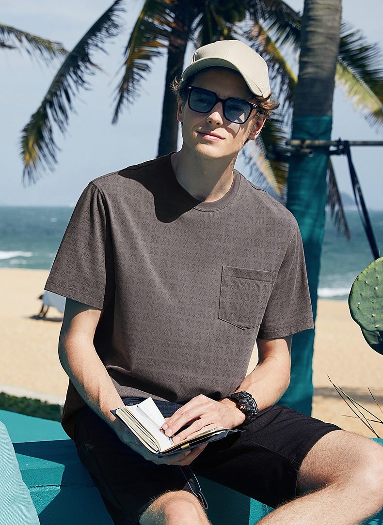 【凉感索罗纳】柒牌圆领短袖T恤男夏季新款时尚字母满印口袋上衣 126T71830