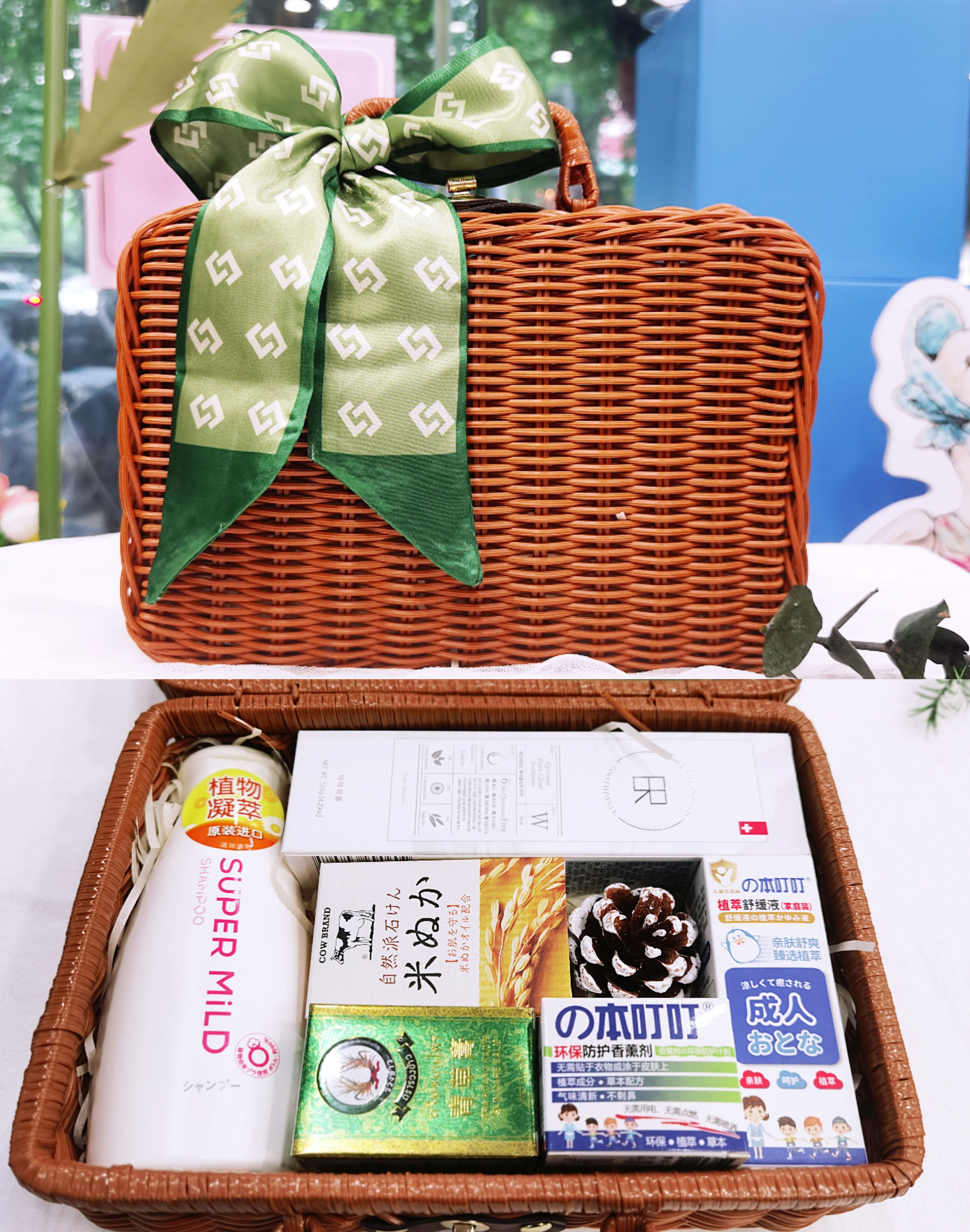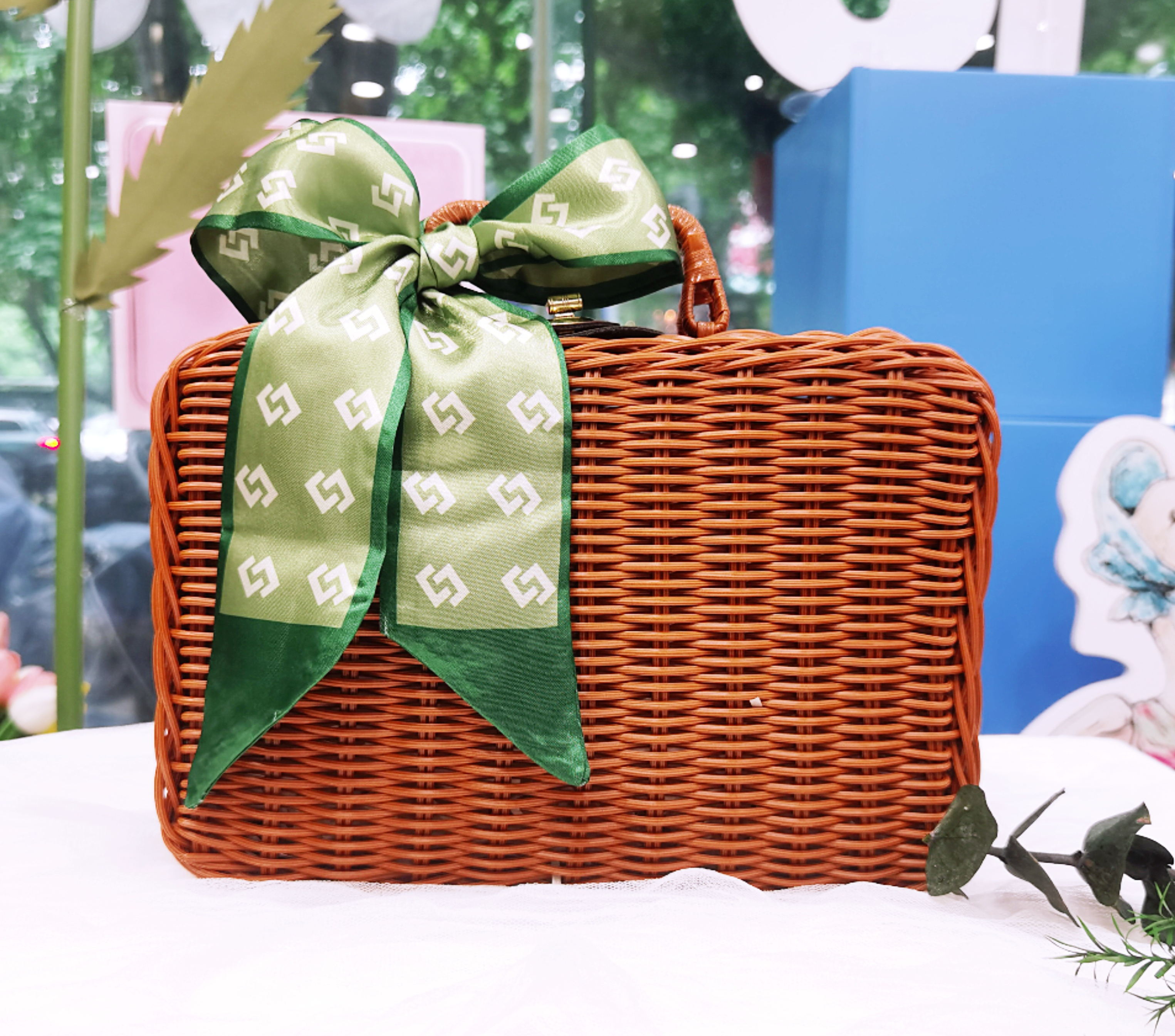 伴手礼|婚庆满月商务伴手礼藤编复古手提箱+白松果+丝带/110248&112440&101763&112704&117710&110055