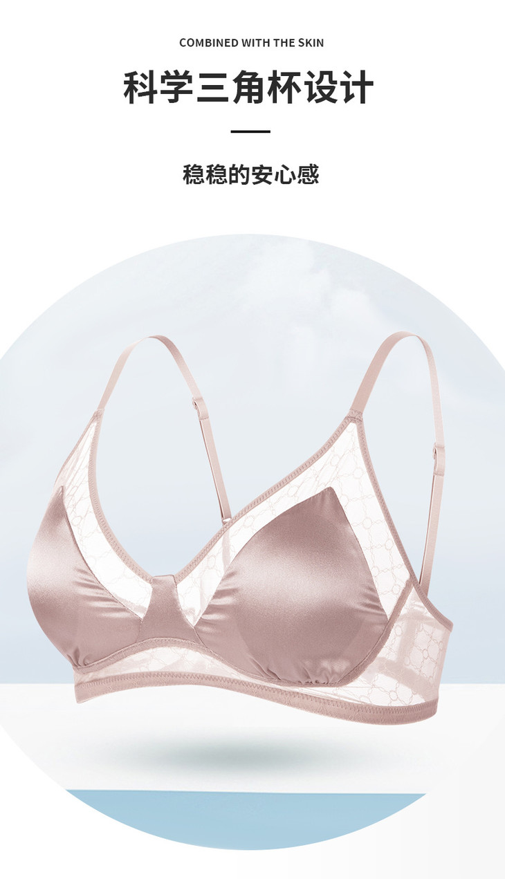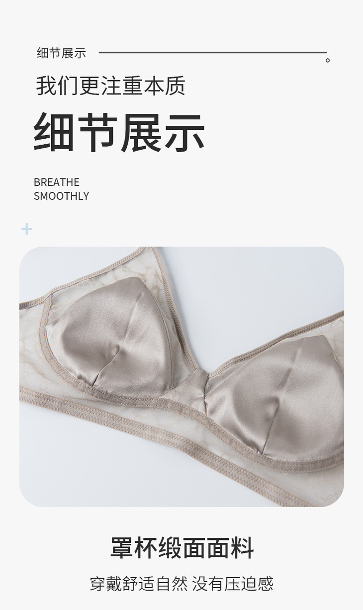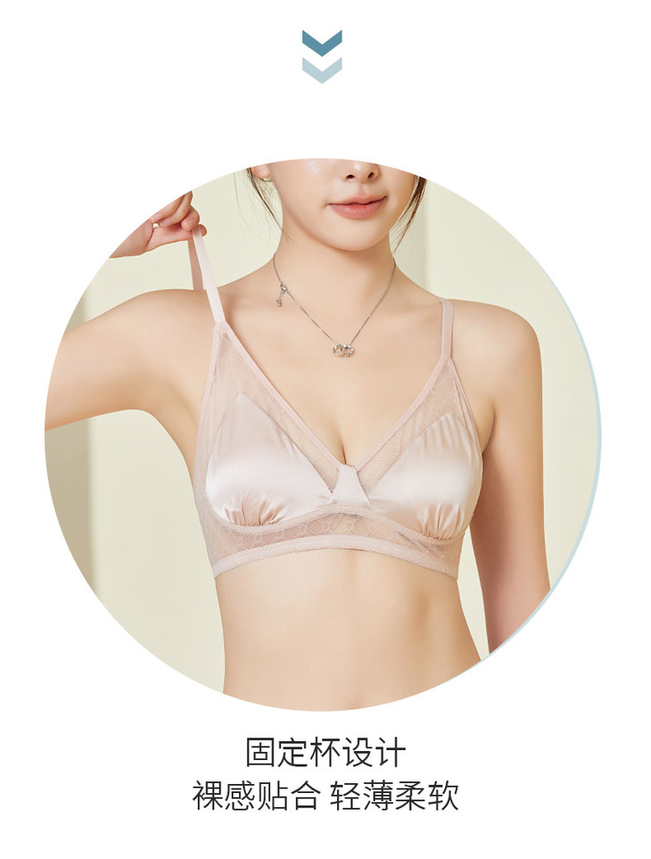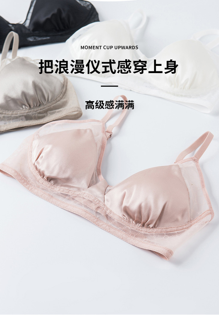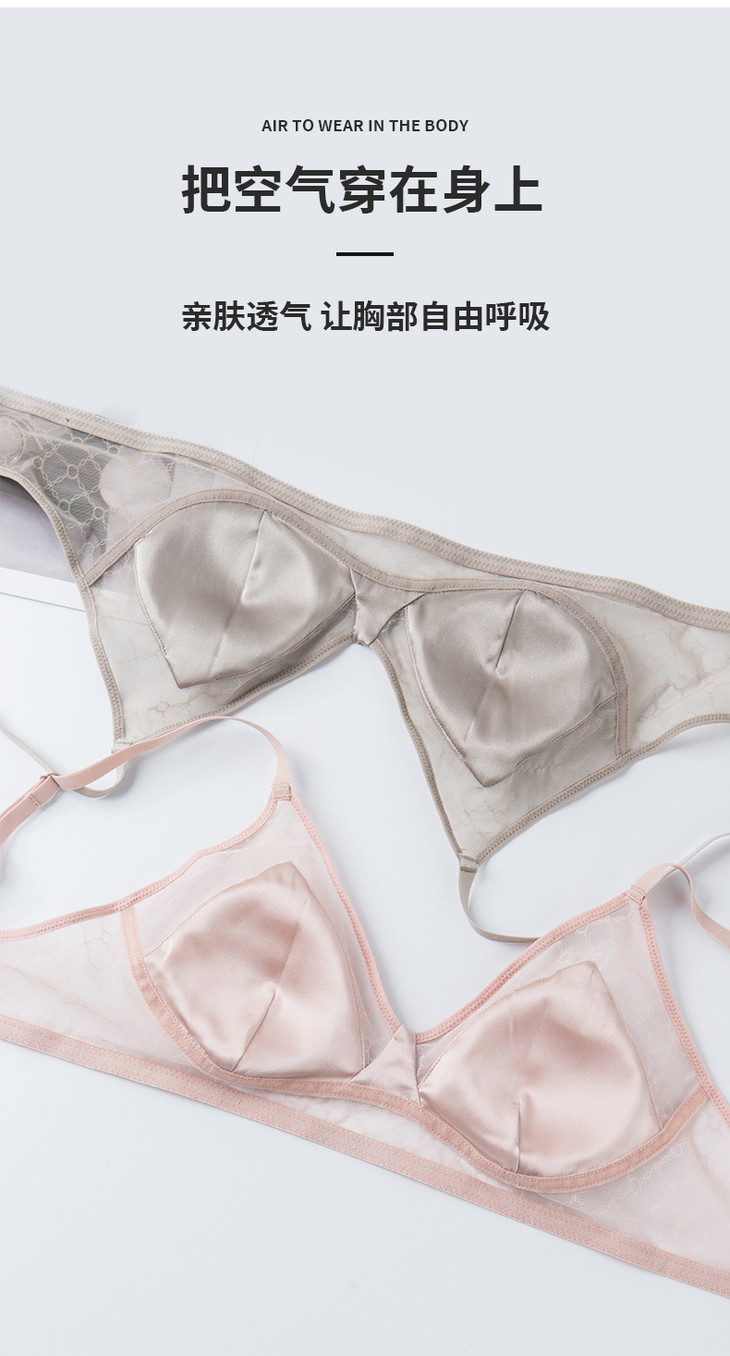 轻奢法式真丝光面文胸, 超薄小胸缎面桑蚕丝内衣 TG02S213