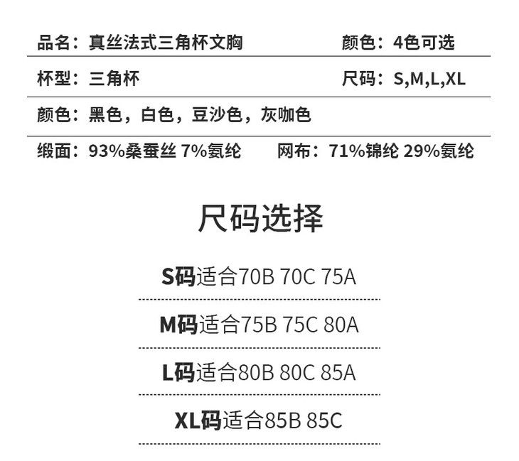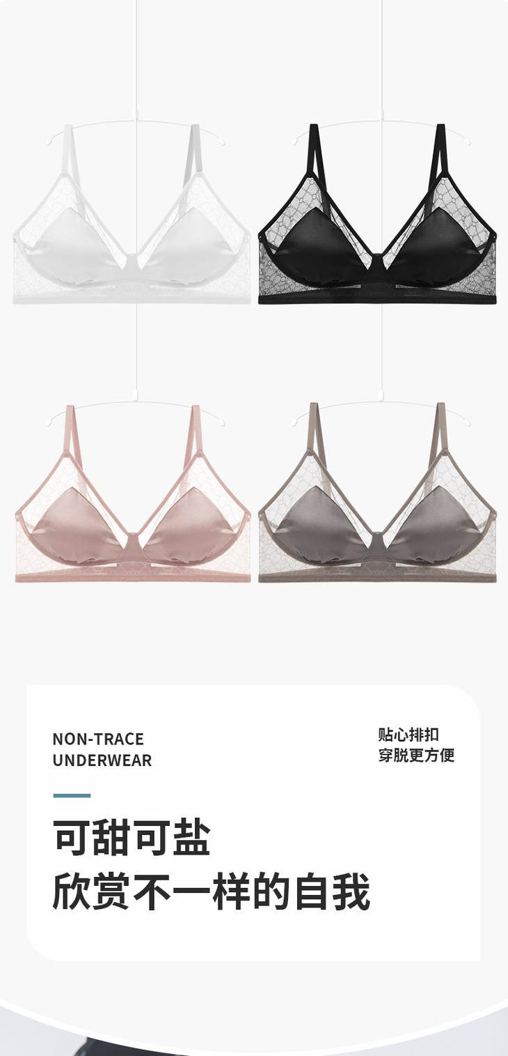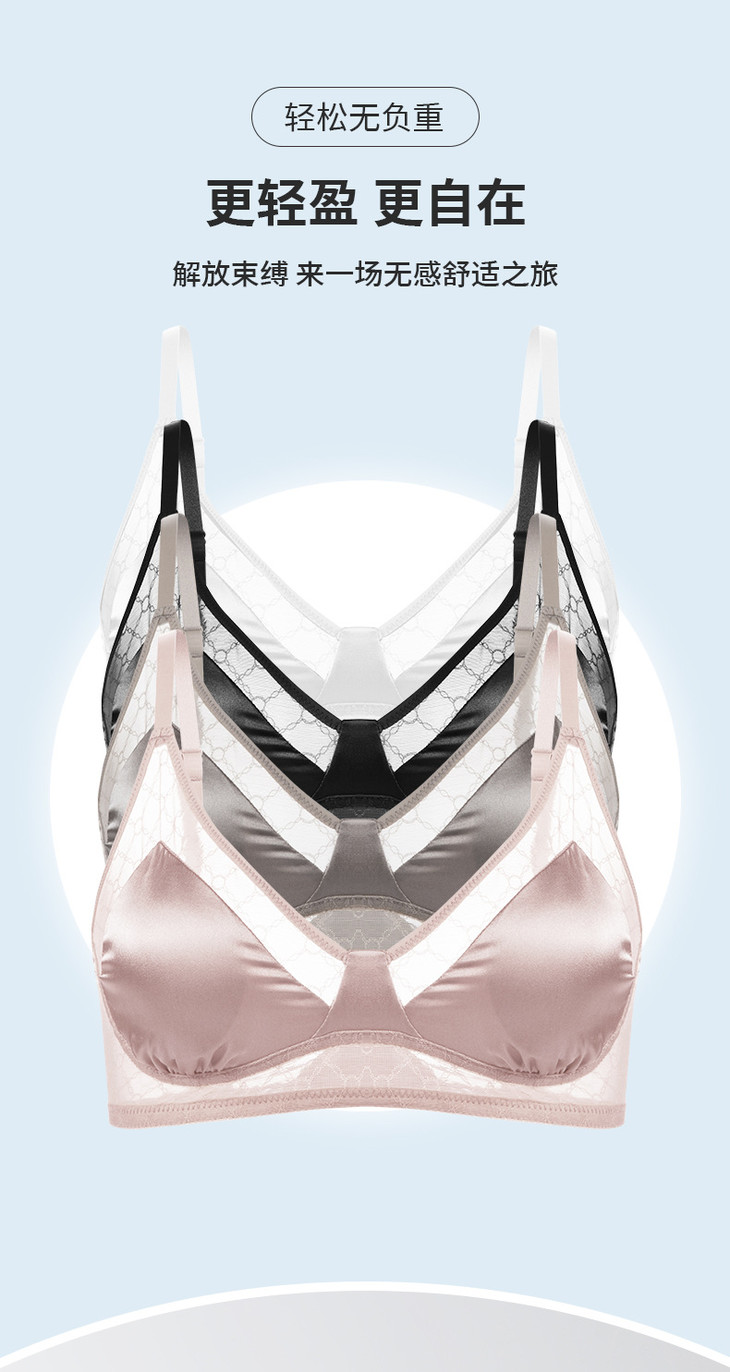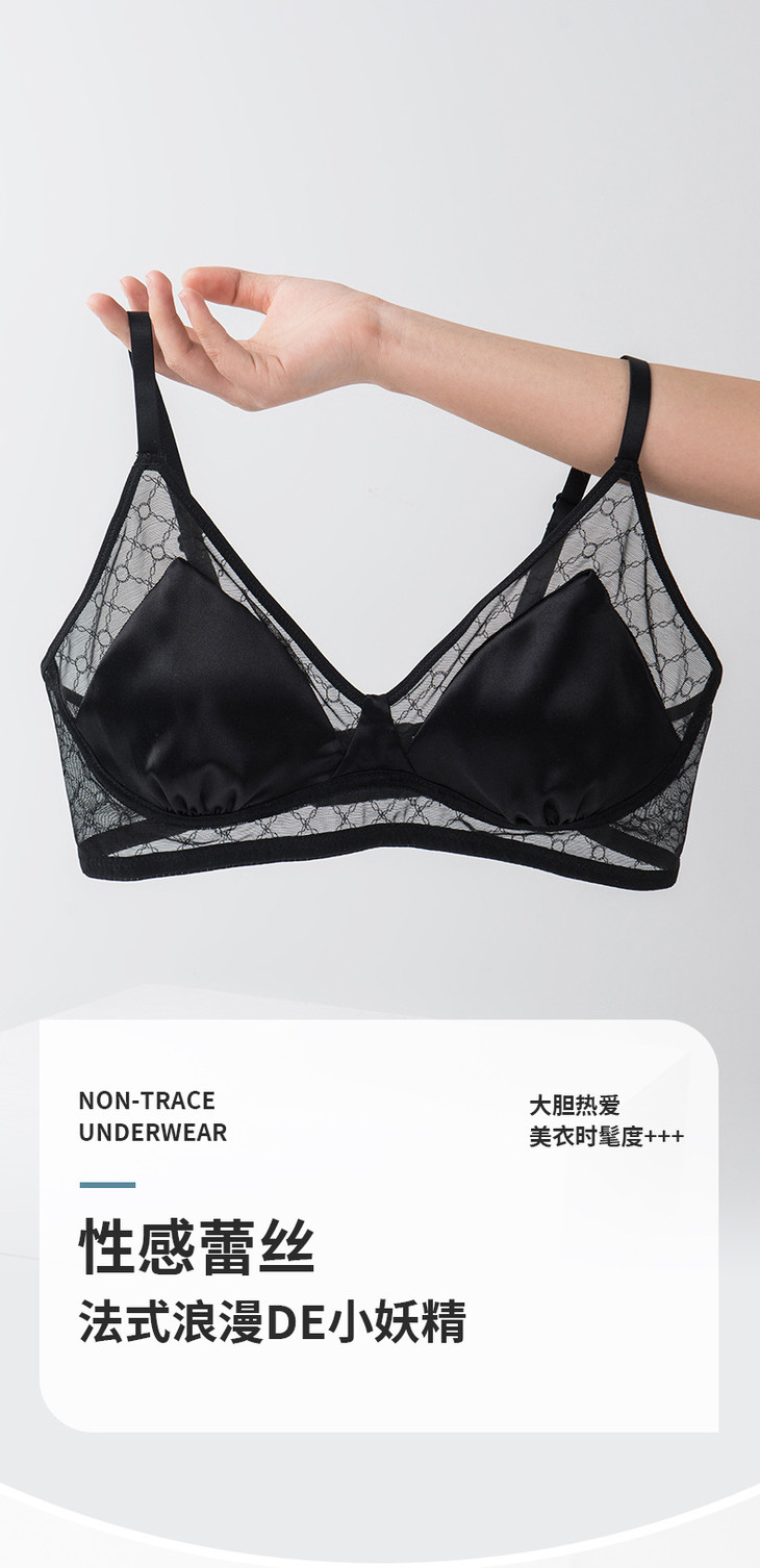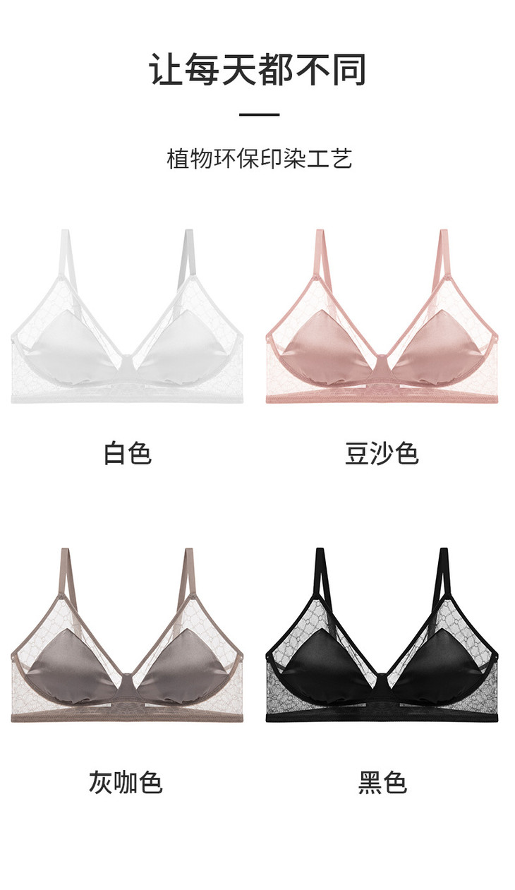 轻奢法式真丝光面文胸, 超薄小胸缎面桑蚕丝内衣 TG02S213