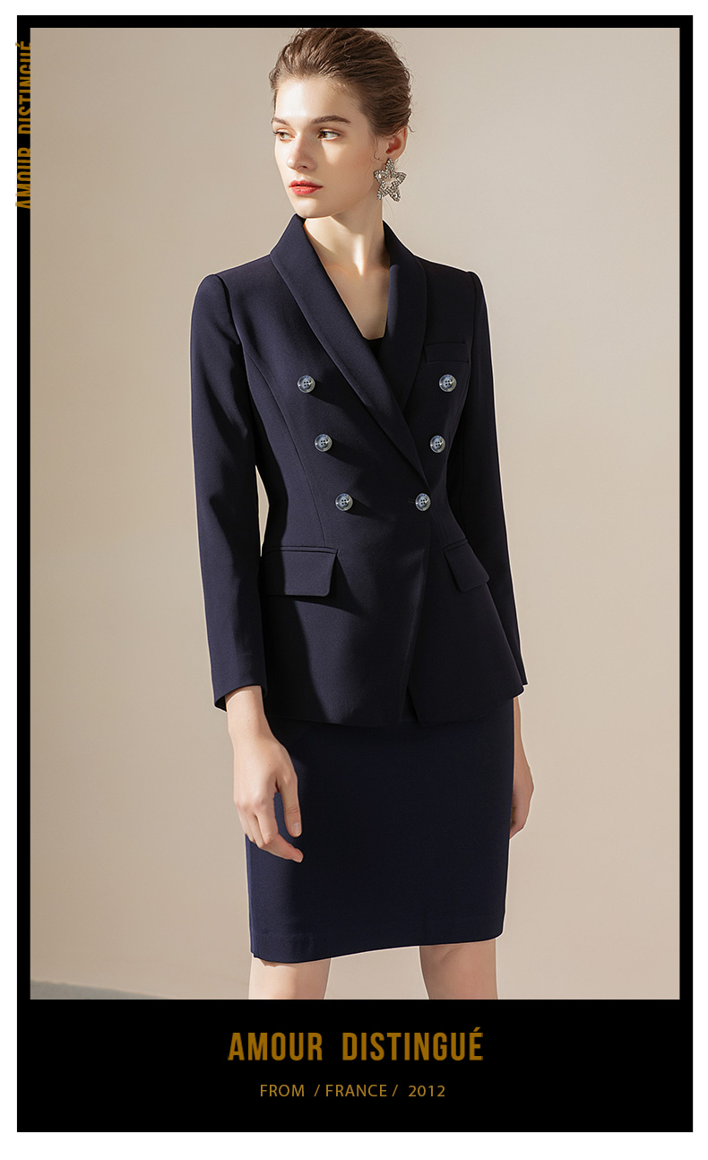 【上衣仅剩S码】IWY/藏蓝色西服西装套裙女时尚修身包臀气质名媛商务职业主持人工作服CS1150