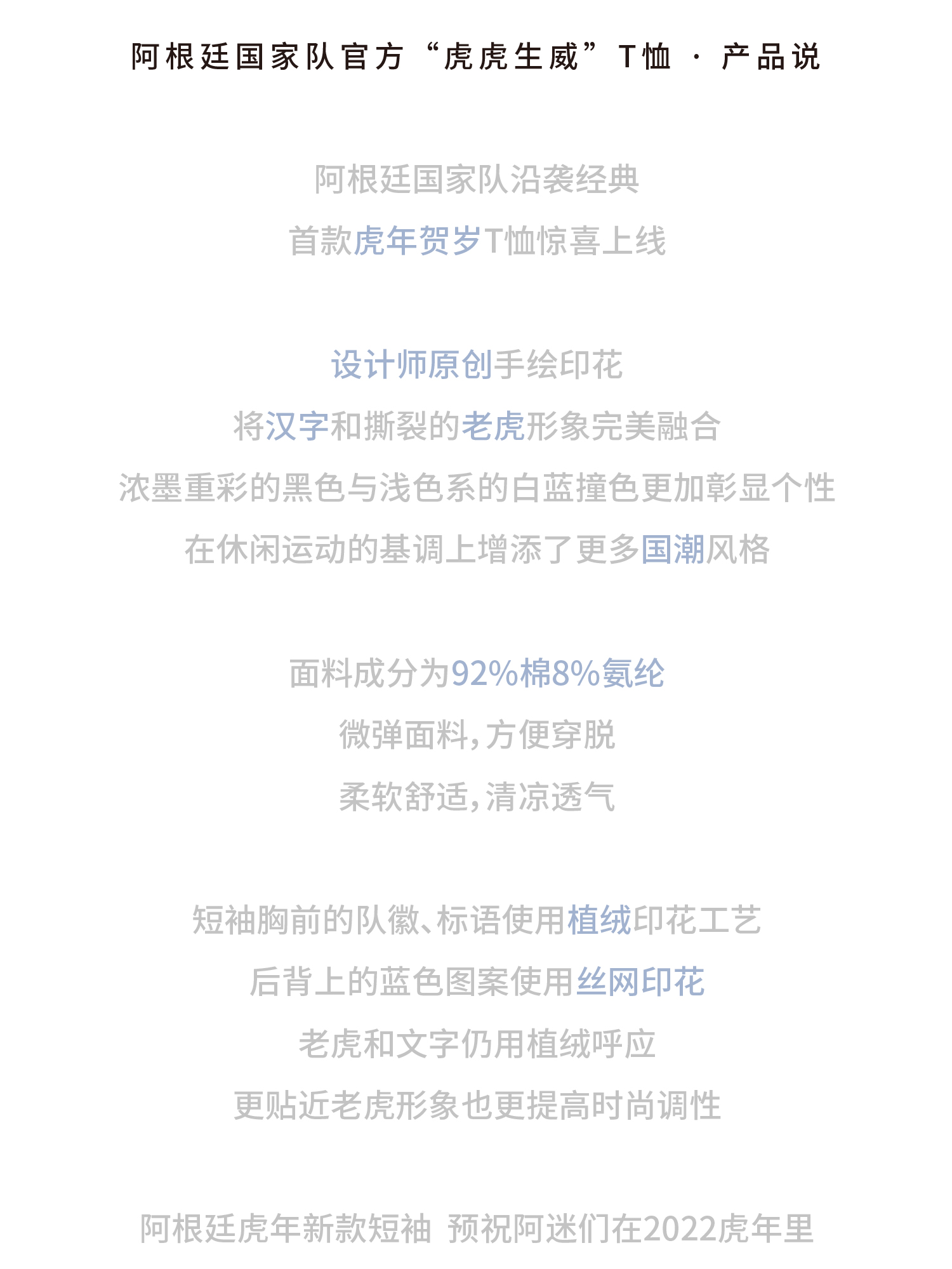 阿根廷国家队官方商品丨虎年限定情侣款圆领短袖国潮T恤虎虎生威 商品缩略图0 阿根廷国家队官方商品丨虎年限定情侣款圆领短袖国潮T恤虎虎生威 商品缩略图1 阿根廷国家队官方商品丨虎年限定情侣款圆领短袖国潮T恤虎虎生威 商品缩略图2 阿根廷国家队官方商品丨虎年限定情侣款圆领短袖国潮T恤虎虎生威 商品缩略图3 阿根廷国家队官方商品丨虎年限定情侣款圆领短袖国潮T恤虎虎生威 商品缩略图4