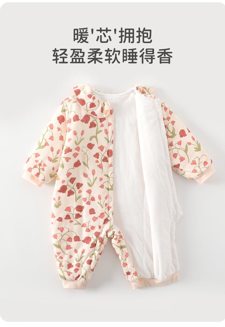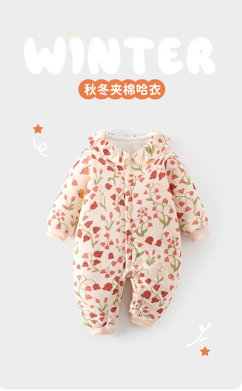 婴幼儿女宝宝连体衣80克夹棉冬装爬服休闲风连体衣长爬家居服