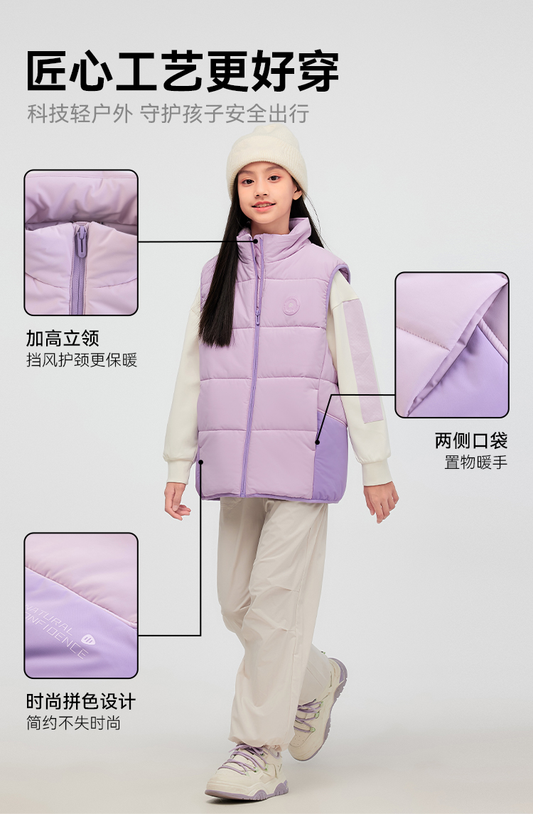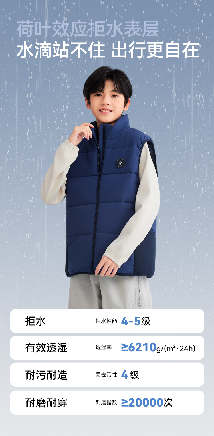 水孩儿童装棉马甲三防2025秋冬新品男童保暖背心女童立领坎肩外套