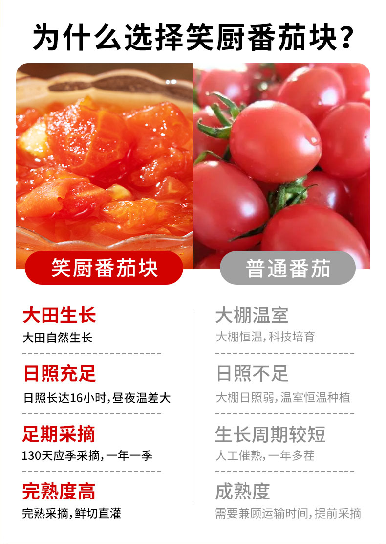 番茄在同一时间大量成熟,工厂集中加工生产,生产日期在每年的9月份,保质期有27个月,请放心食用喔~