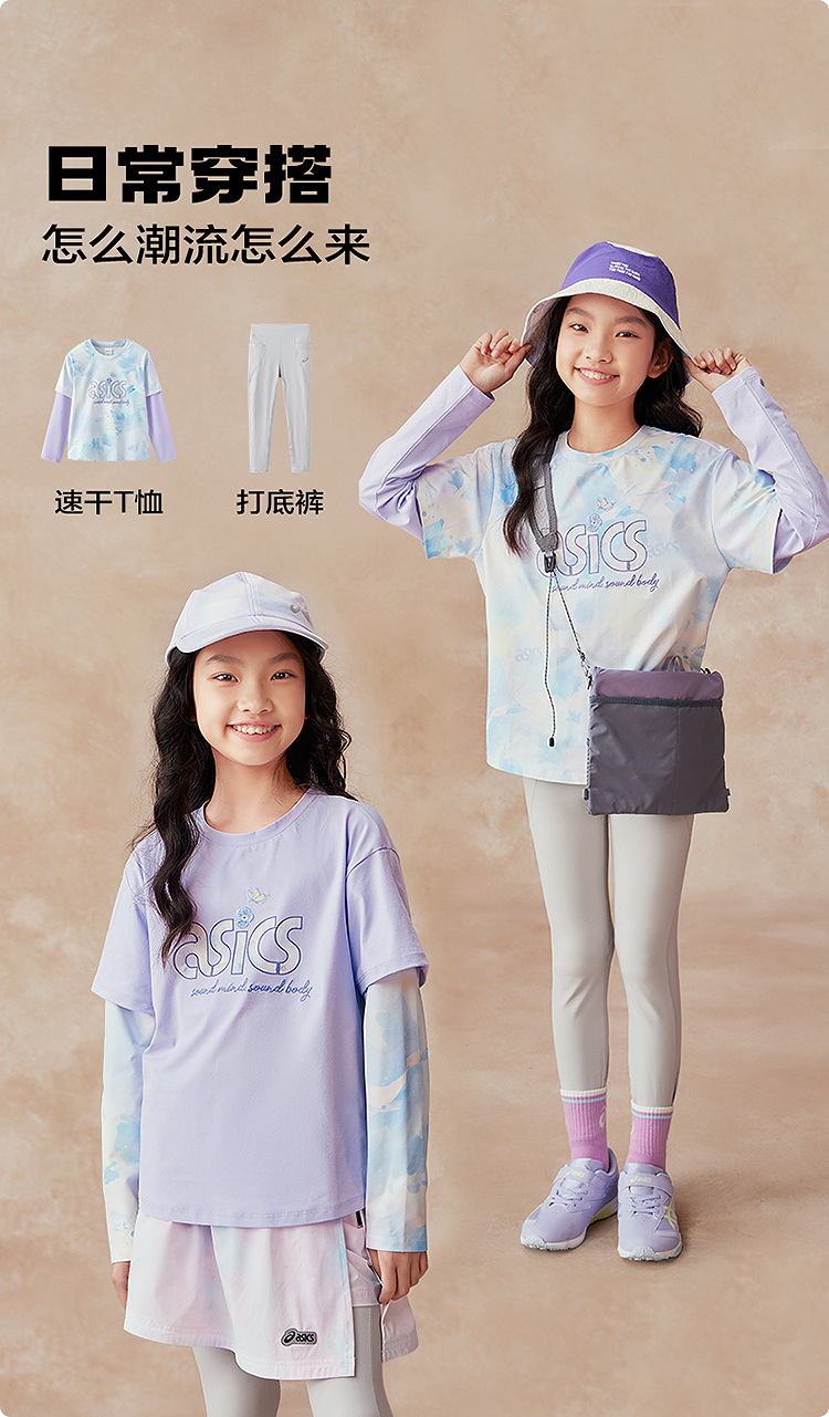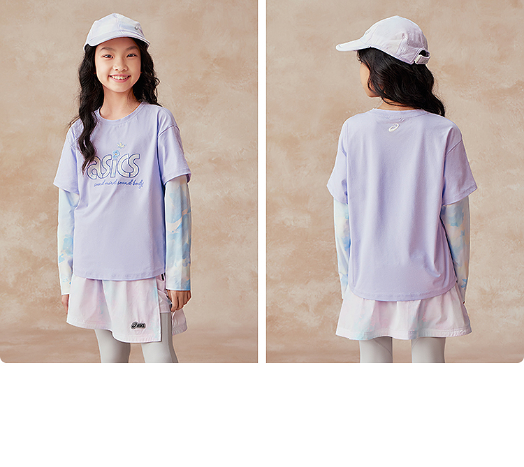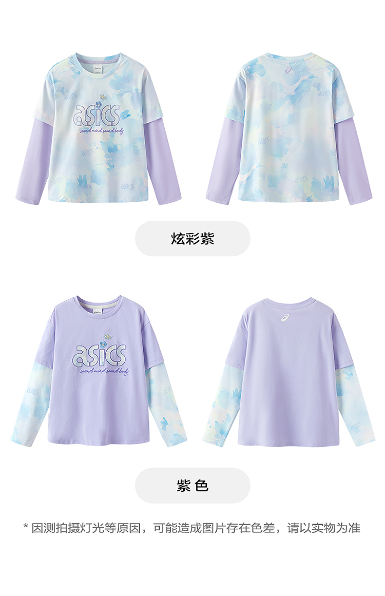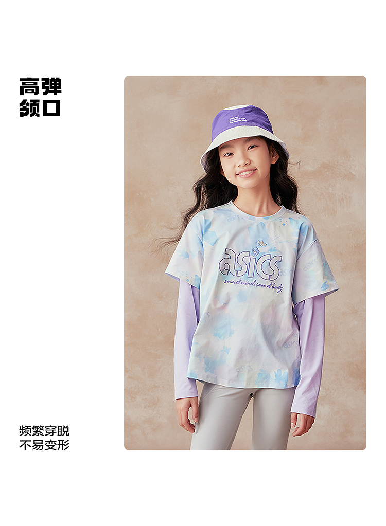 【商场同款】Asics/亚瑟士童装假两件内搭圆领T恤2025年春季新品