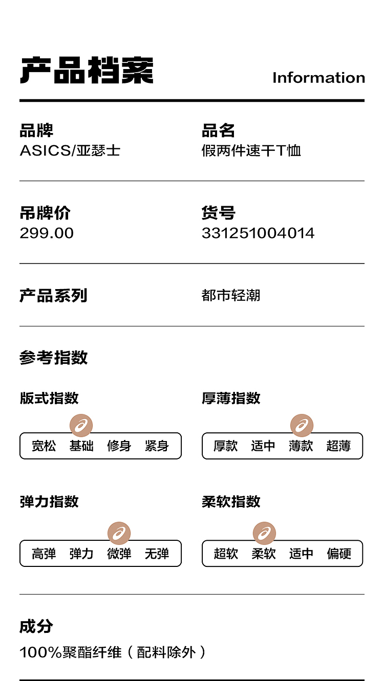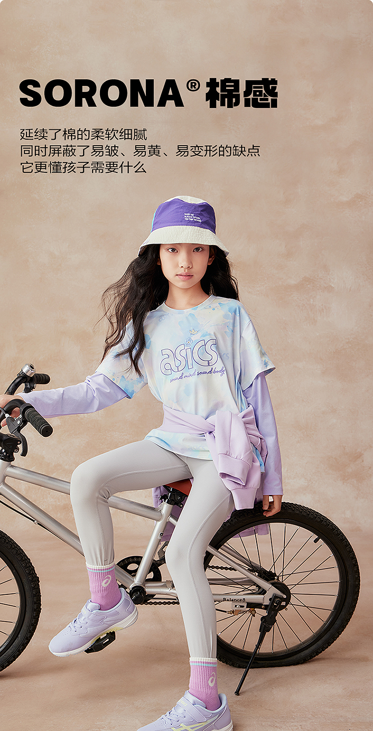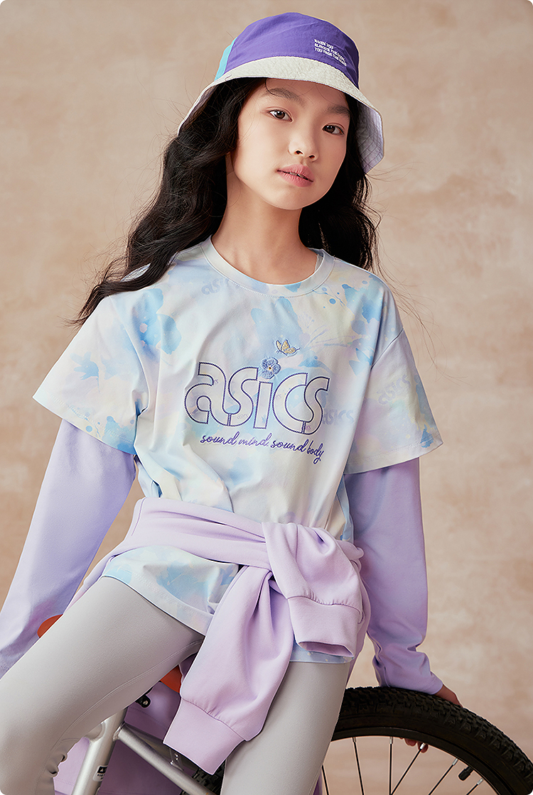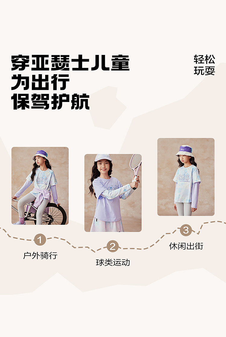【商场同款】Asics/亚瑟士童装假两件内搭圆领T恤2025年春季新品