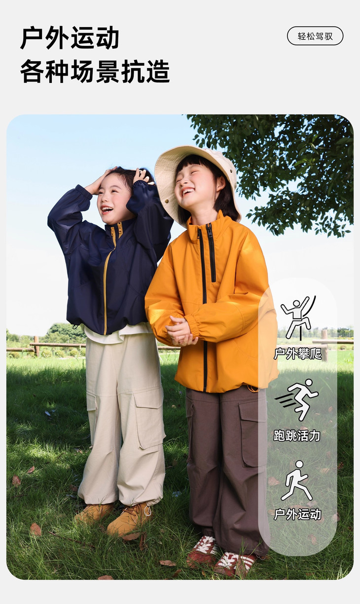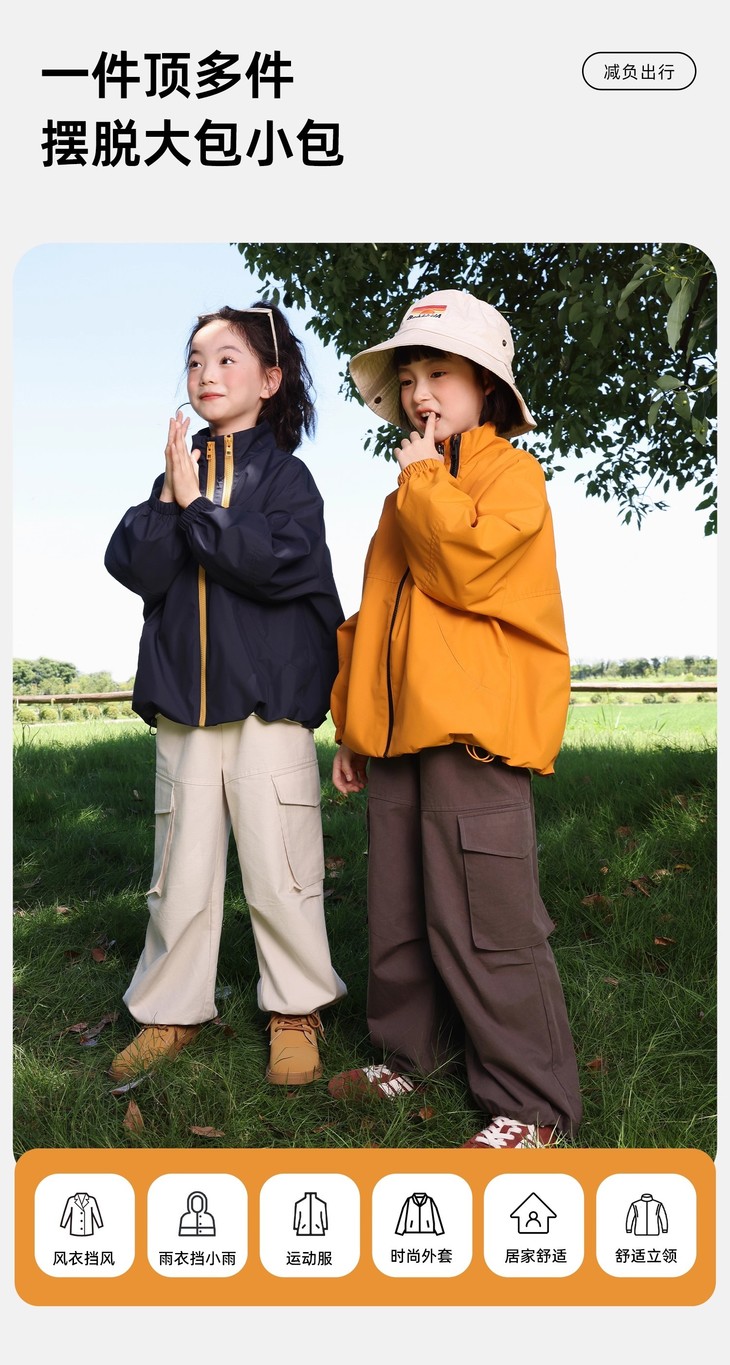 🌿童年不被定义 防水·耐磨·撞色美学 🍬110-170码,一件满足风雨探索与山系潮搭 运动,时尚 成长不设限,疯玩更尽兴 一件从小穿到大的冲锋衣, 见证孩子征服自然的每一步🎊