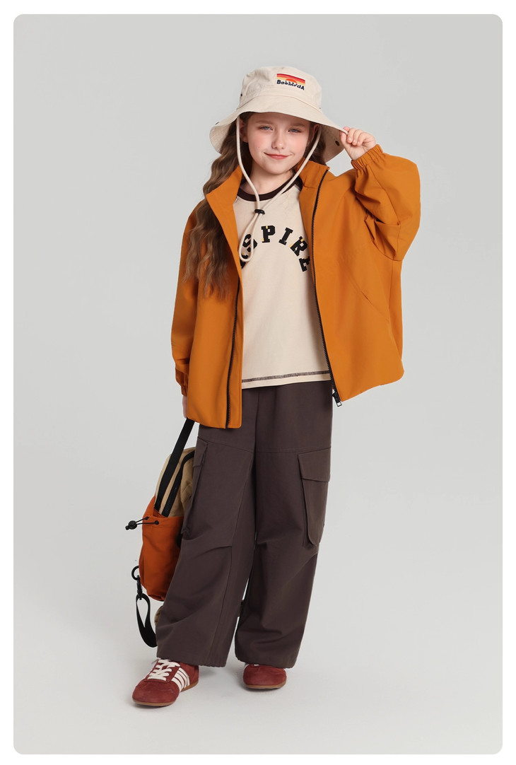重点夸夸这个南瓜色🎃!纯纯的亮色一点不土 男孩穿是元气小帅哥,女孩穿像颗甜甜的小萌宝 阳光下晃眼又好看,随便搭条牛仔裤都出彩 拍照根本不用找滤镜,自带清新感~ 左右两侧是对称的真口袋, 揣个小零食、湿纸巾超方便, 跑跳也不容易掉东西; 胸前做了多个拼接设计,相当费面料 瞬间让纯色系不单调, 看着特别有层次感,又不会显得累赘, 娃穿起来利落又可爱~