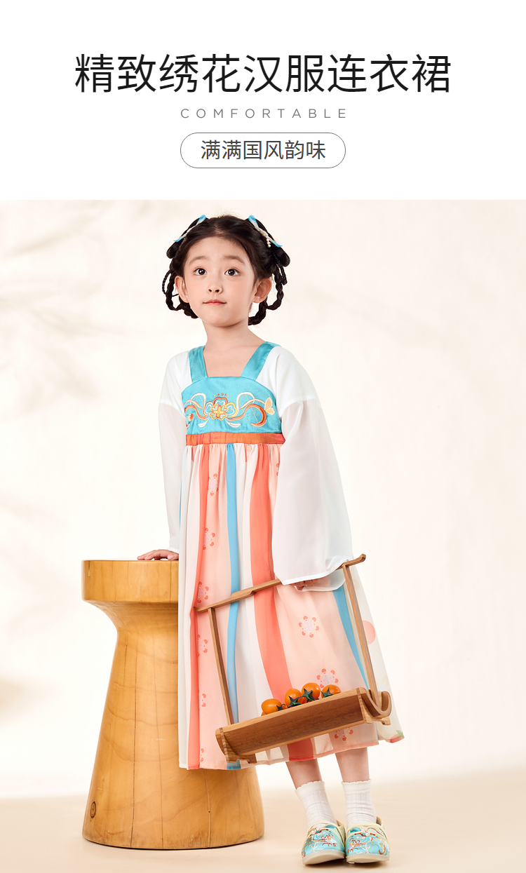 巴拉巴拉儿童连衣裙女童春装国风裙子长袖小童洋气甜美刺绣时尚潮