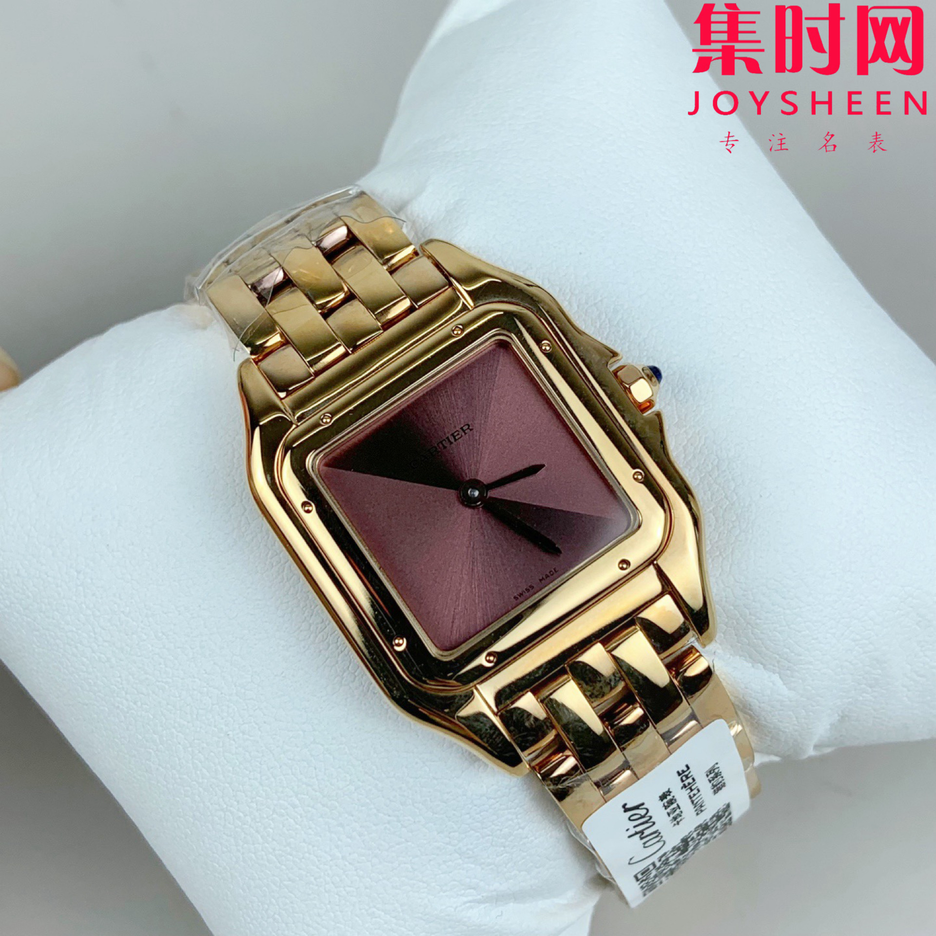 【表壳】表盘尺寸:小号27 x 37mm,方形表壳线条柔美,精美流线表耳,与表壳一体成型,魅惑动人。是Panthère猎豹所传达的美学风格。