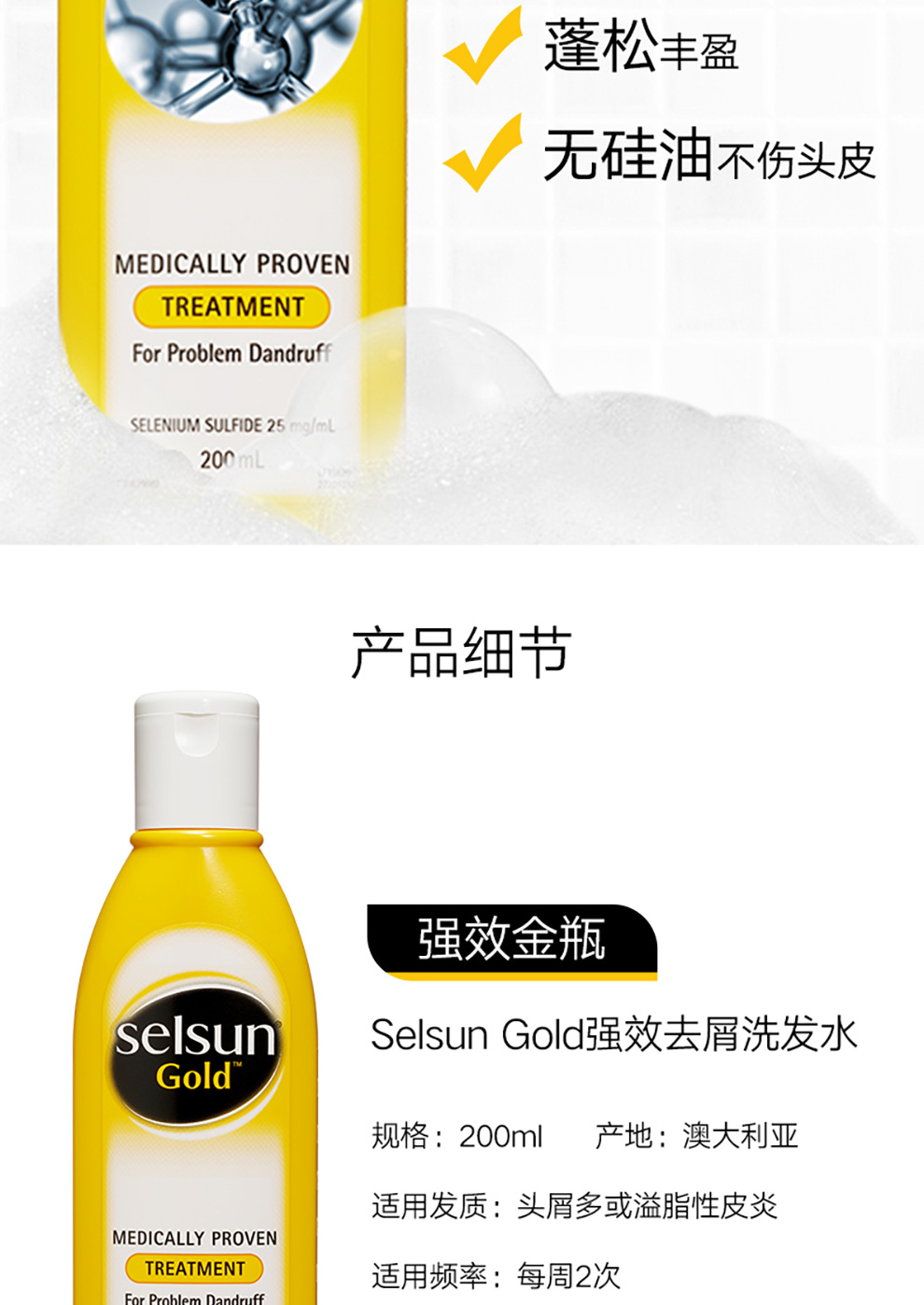 【中欧班列精选】澳洲洗发水 原装进口Selsu硫化硒去屑止痒控油无硅油清洁洗头膏 200ml/瓶