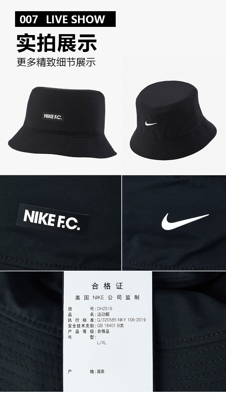 SFS耐克正版 Nike F.C.渔夫帽速干透气轻便舒适防晒运动帽 DH2516