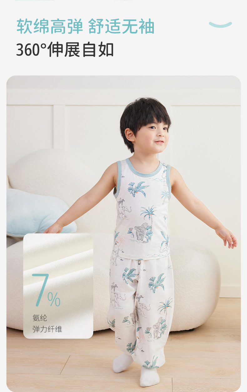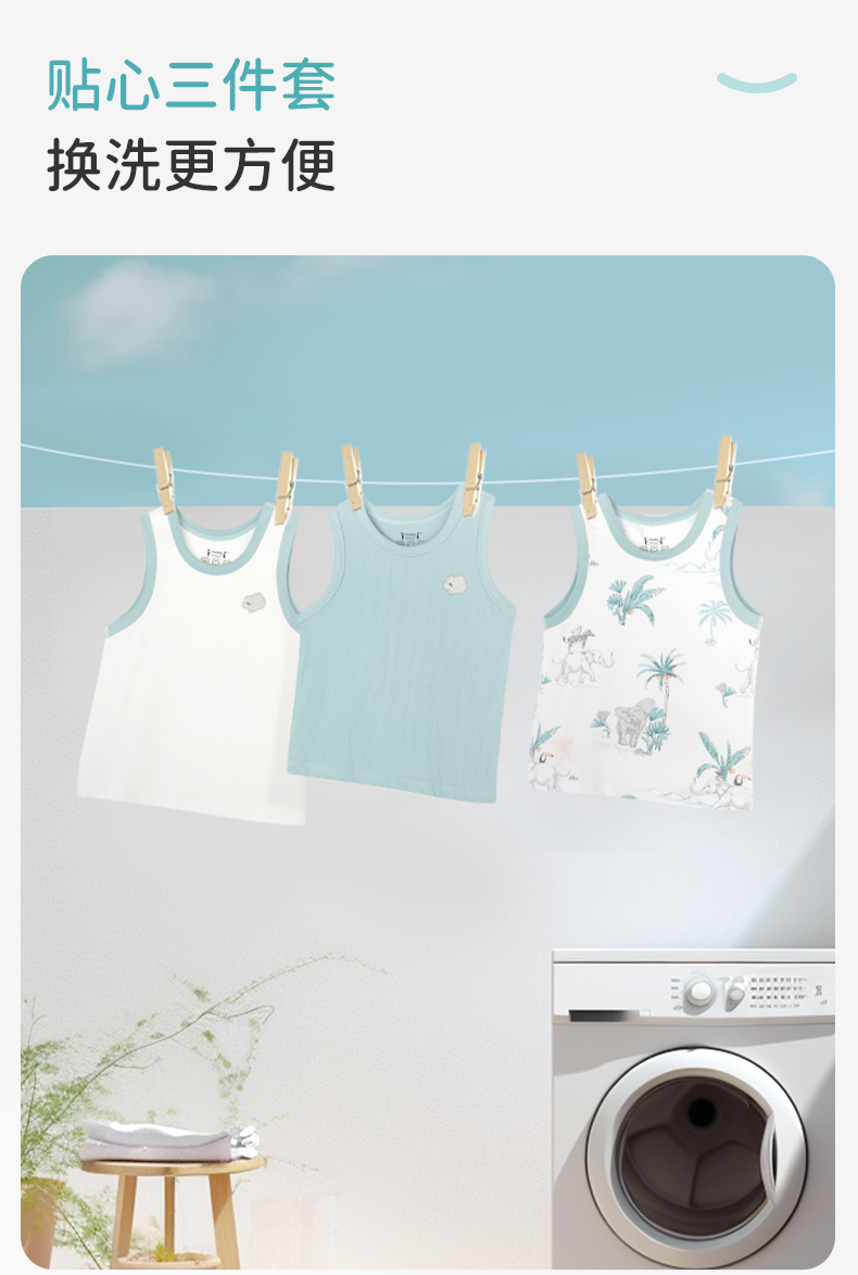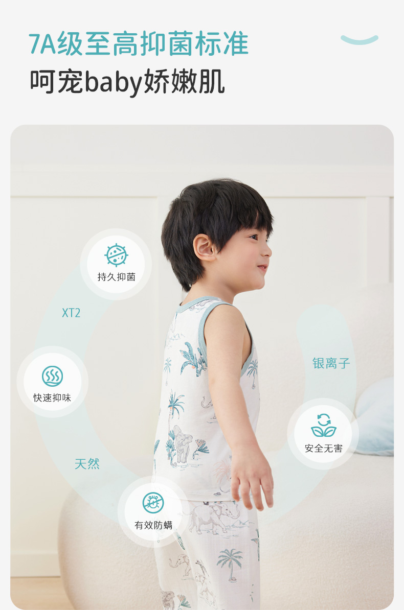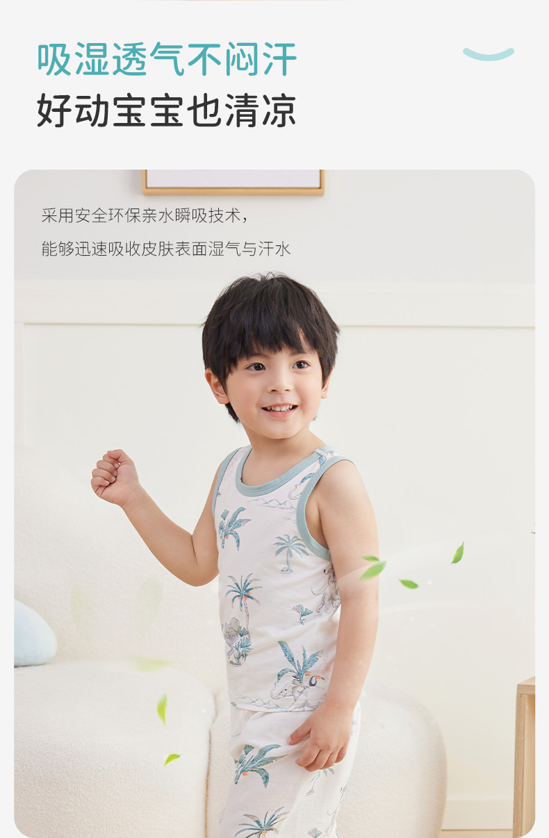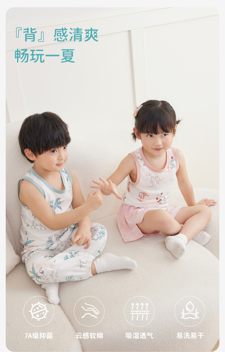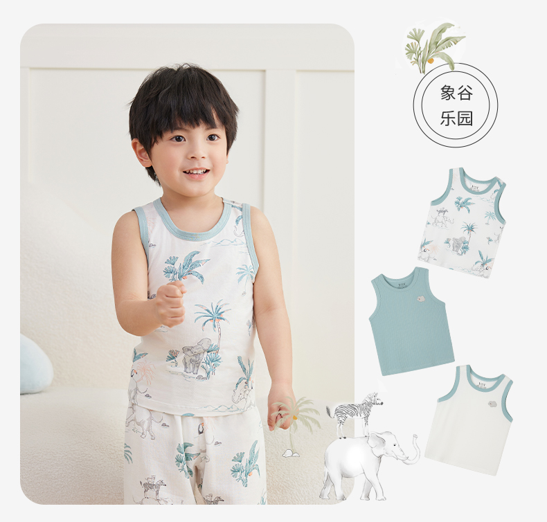 ibaby×outlast太空科技恒温低敏针织小背心(3件装)儿童睡衣春夏新款抑菌防螨
