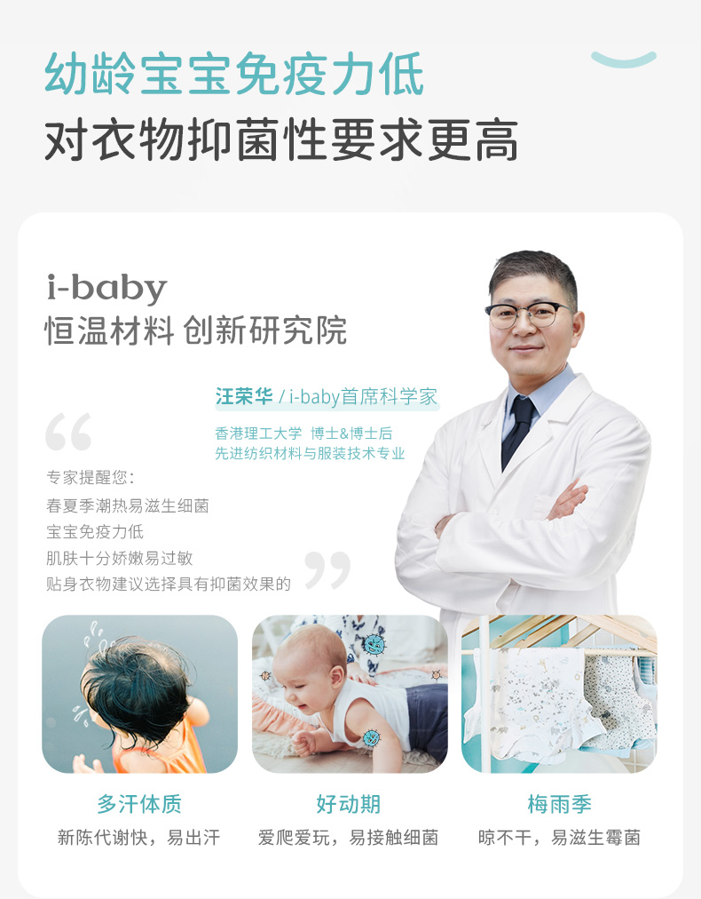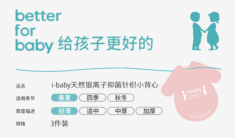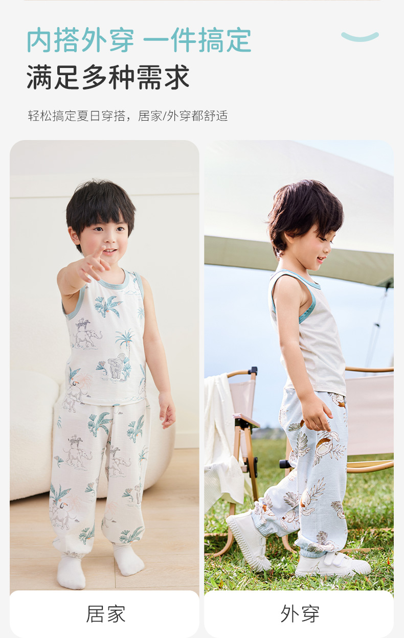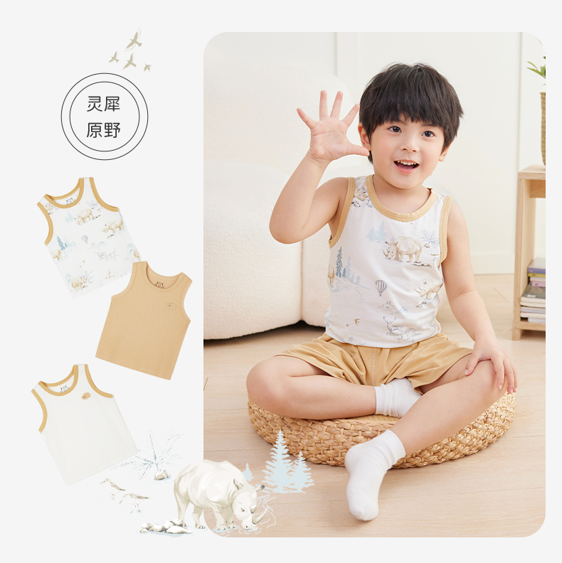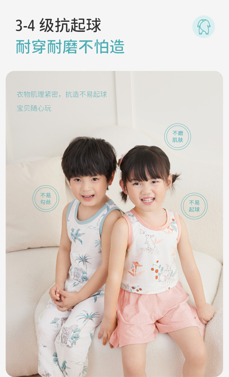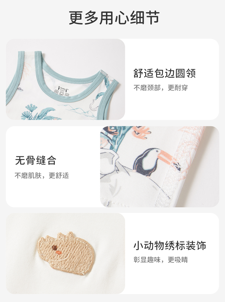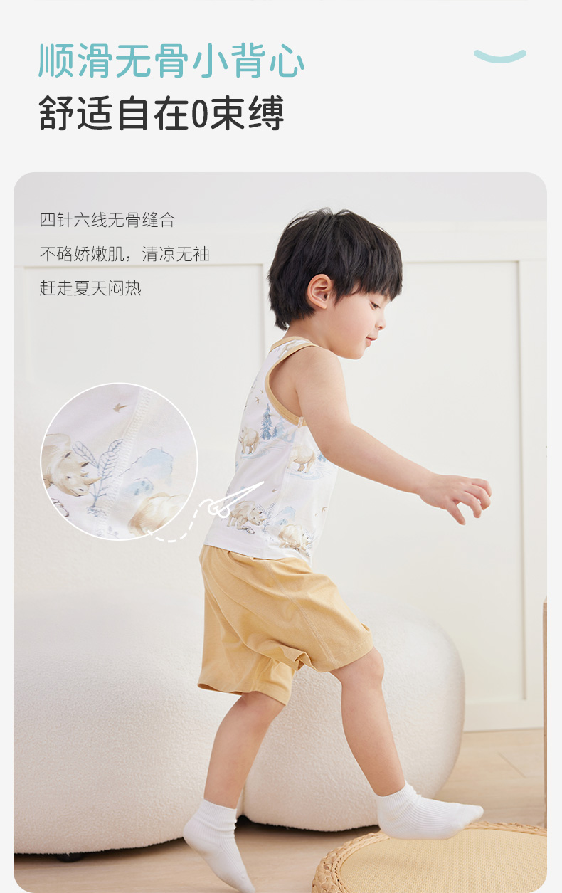ibaby×outlast太空科技恒温低敏针织小背心(3件装)儿童睡衣春夏新款抑菌防螨
