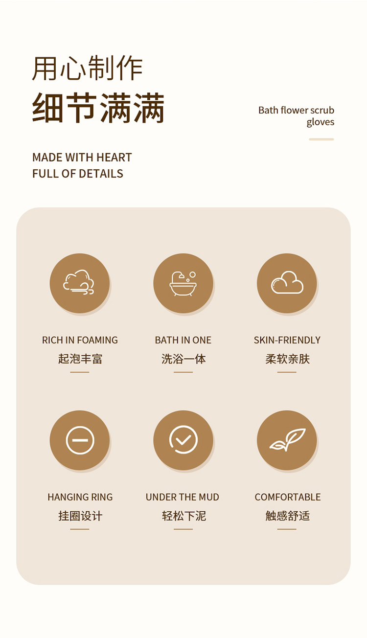 FaSoLa 搓澡手套搓澡巾粗砂搓背巾男女洗澡洗浴家用后背搓泥搓灰浴球