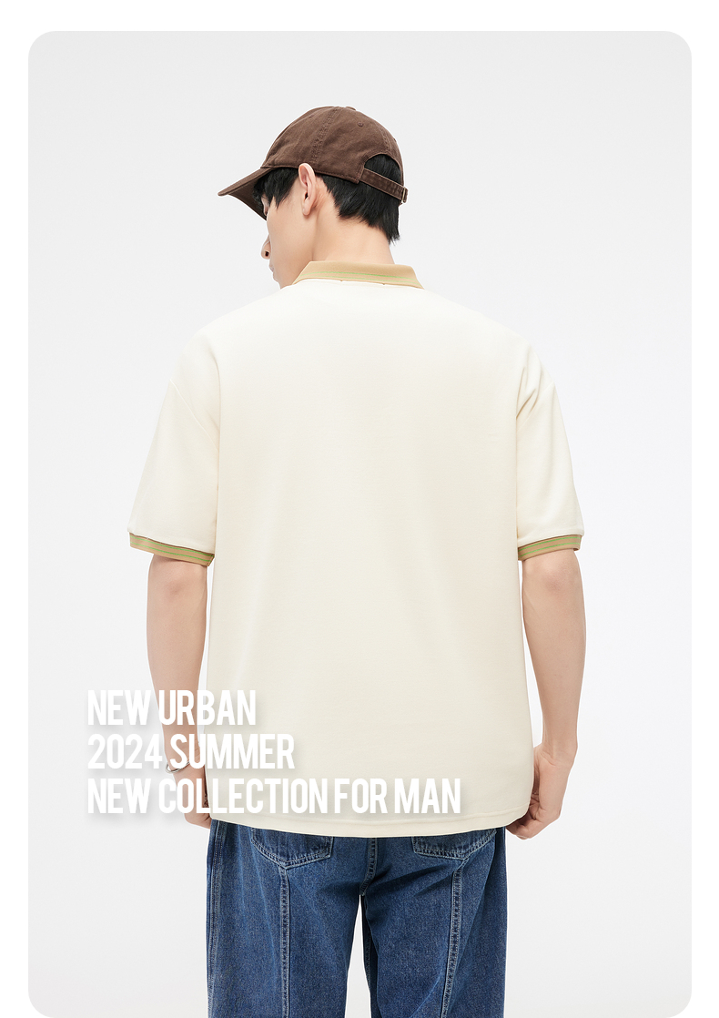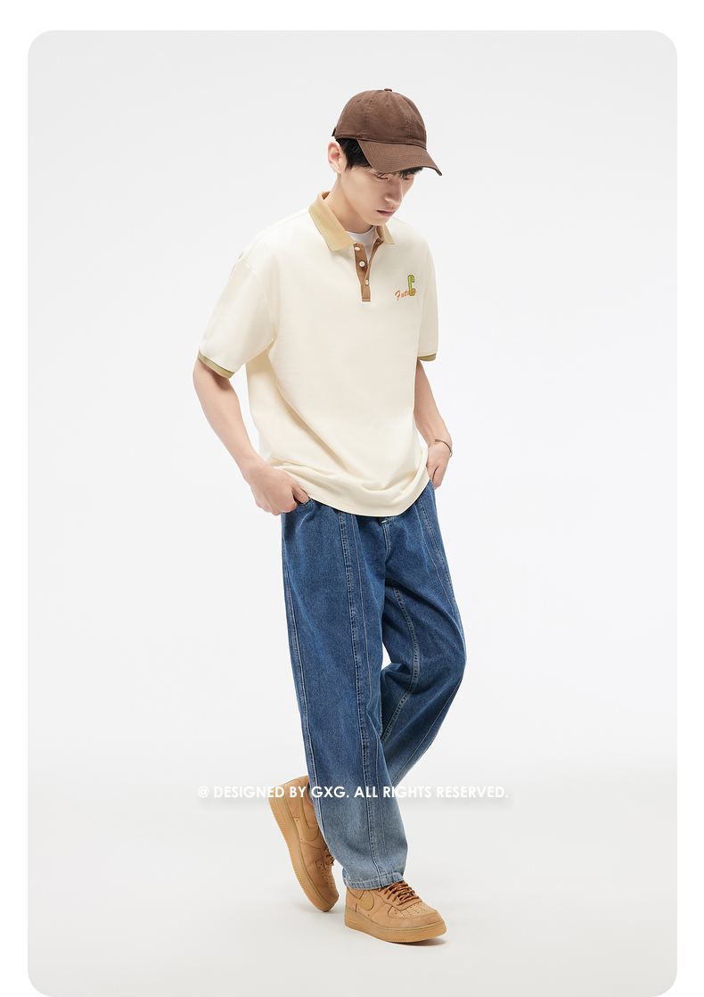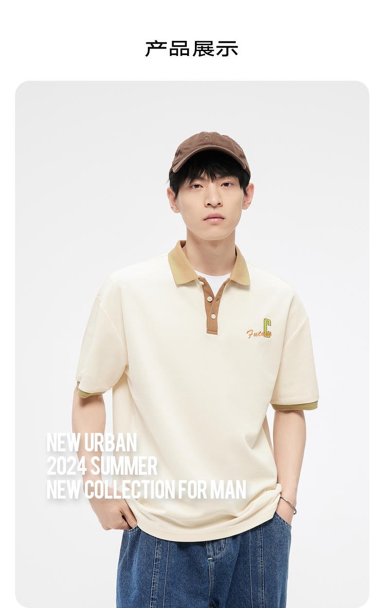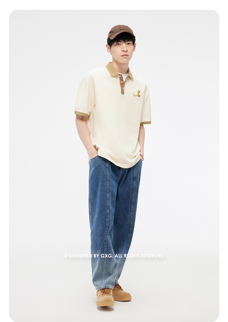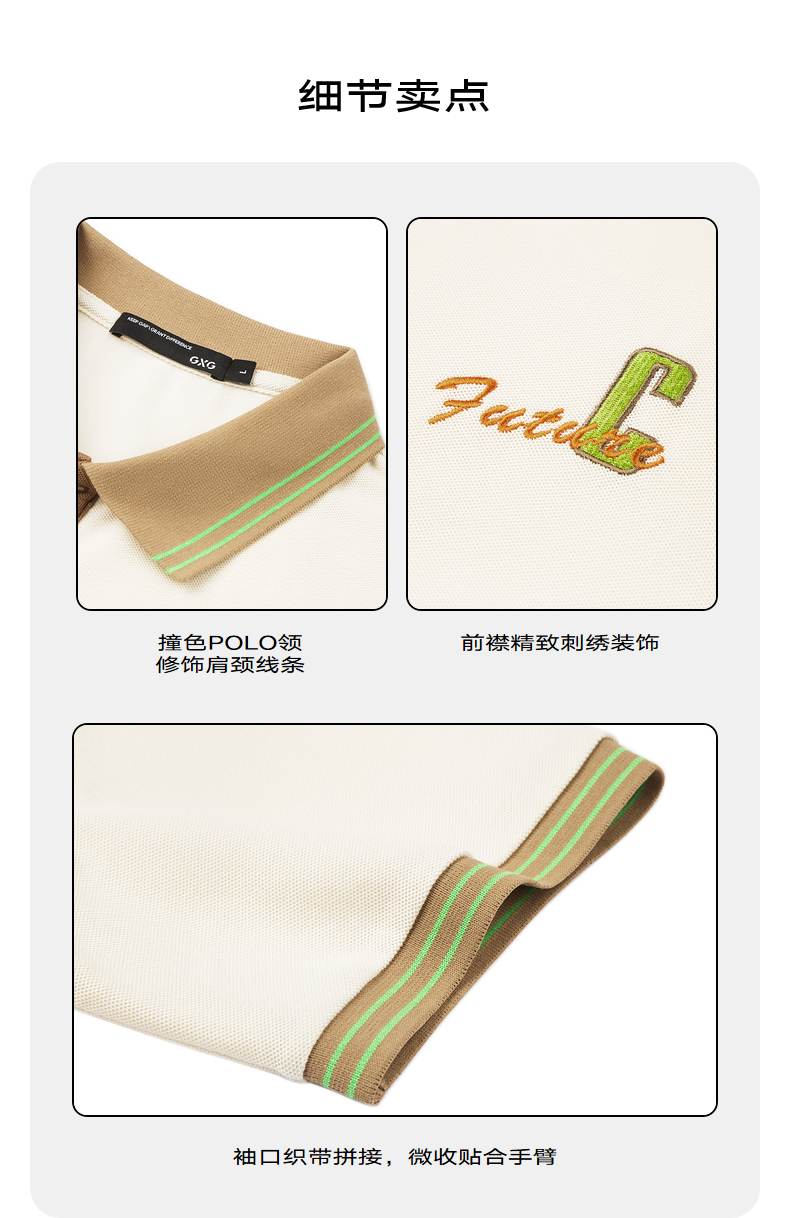GXG男装 撞色拼接领口精致绣花休闲情侣短袖Polo衫男