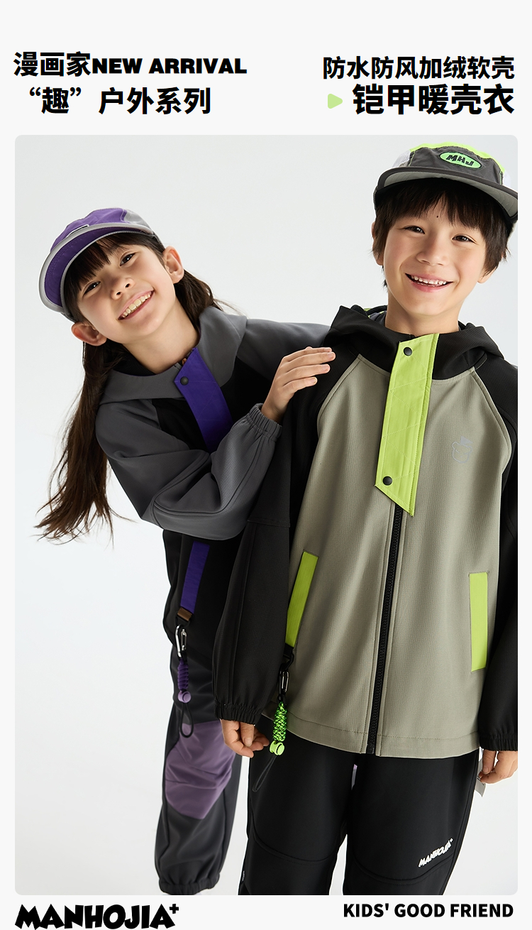 漫画家【铠甲暖壳衣】上学训练骑行户外防水防风内里加绒软壳外套