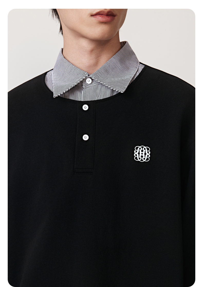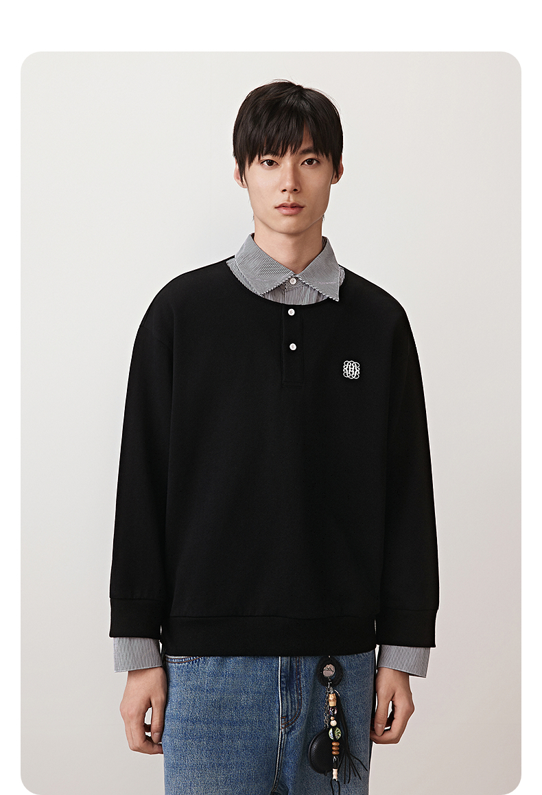 GXG男装 衬衫假两件设计卫衣纯色小标长袖内搭 2025秋季热卖