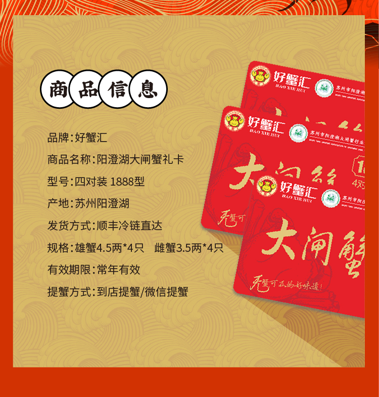 【无蟹不欢】好蟹汇至尊上品1888 型雄蟹4.5 两*4 只雌蟹3.5 两*4 只 四对装 礼券
