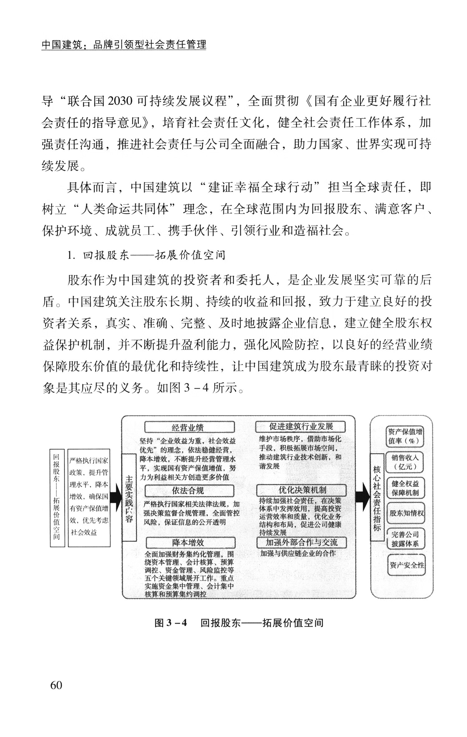 本书将系统回顾梳理中建集团取得社会责任管理实践成果背后的逻辑与方法,以供更多企业借鉴和学习。随着企业社会责任实践的推进,中建集团快速成长为国际企业,成为“中国名片”、中国品牌的代表。中建集团用社会责任理念指导实践、融入实践并实现了跨越式发展,将责任融入品牌,以品牌塑造责任,商业成功与责任推进两者之间形成了良性循环,成功探索了一整套独特有效的央企社会责任管理范式。