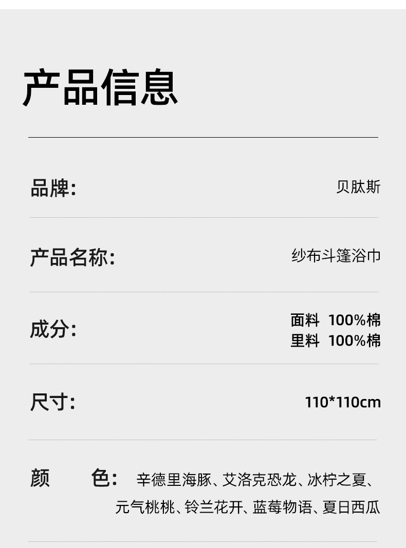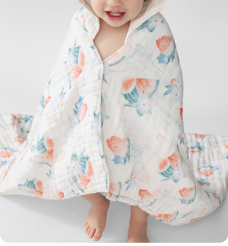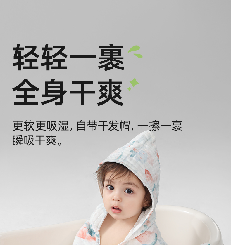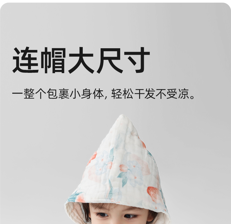 *【贝肽斯】新生婴儿纱布浴巾超软全棉儿童带帽斗篷宝宝纯棉a类洗澡巾 6层纱布