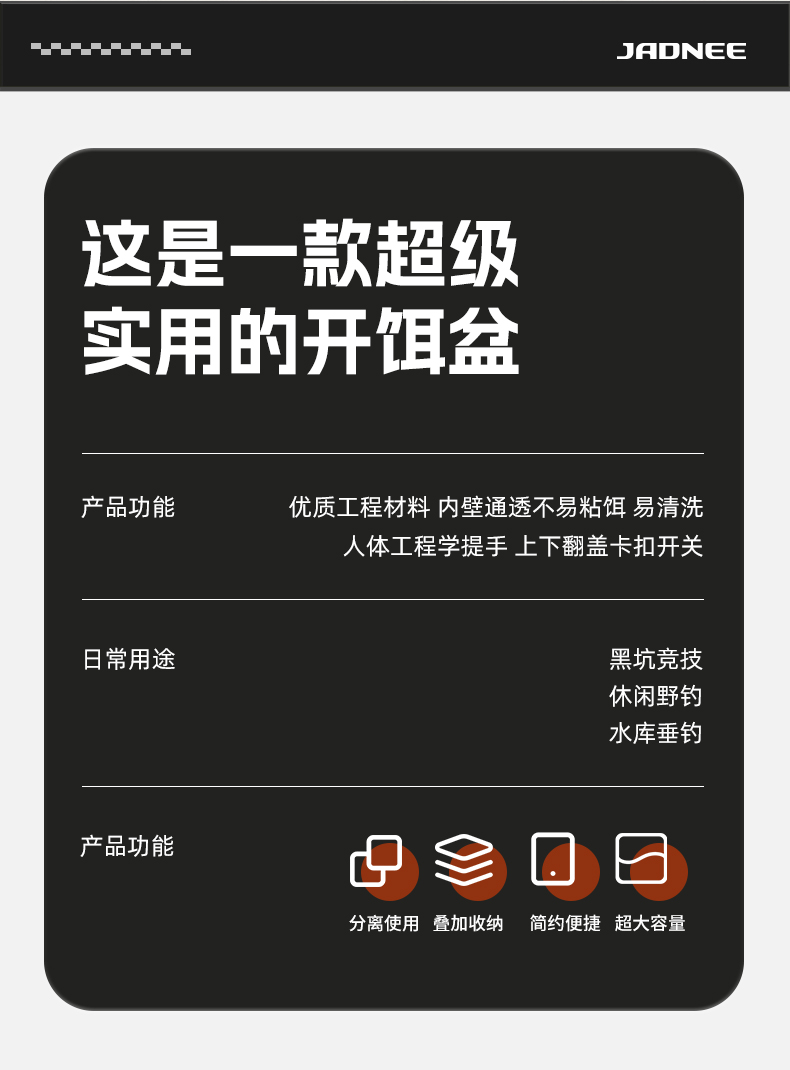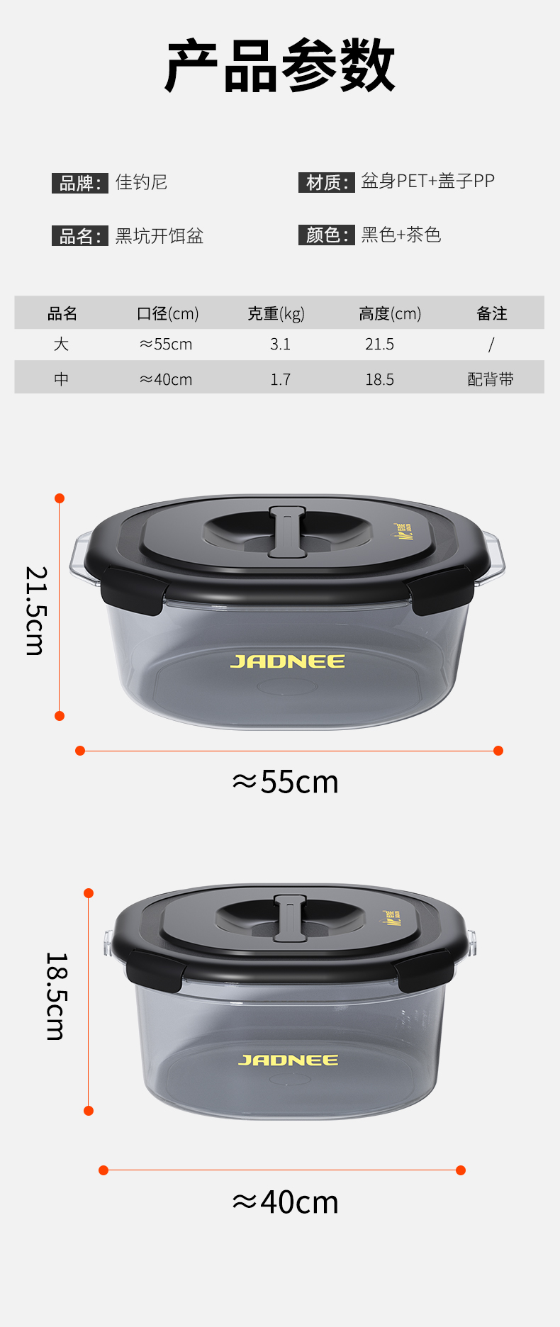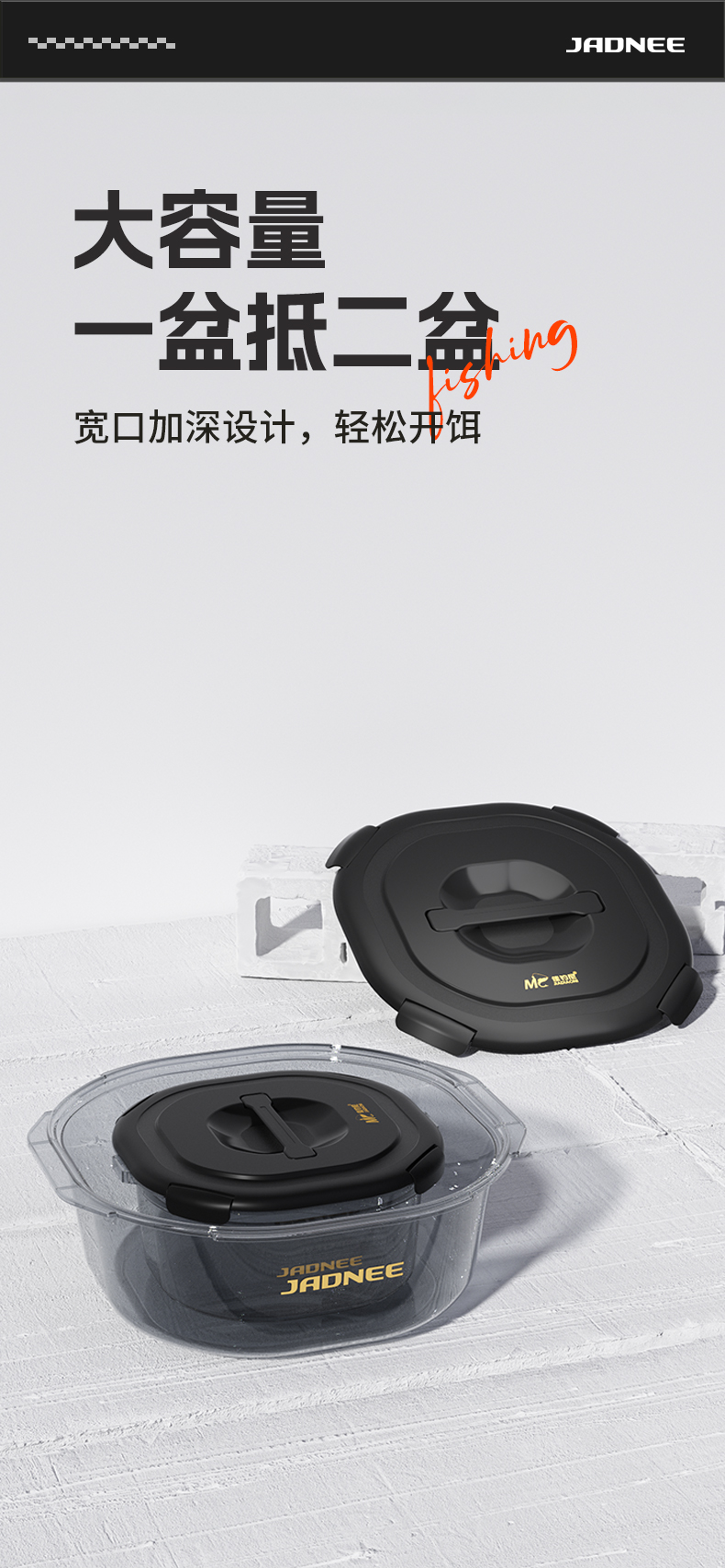 佳钓尼大容量黑坑开饵盆大容量易打理PET混合材质健康环保