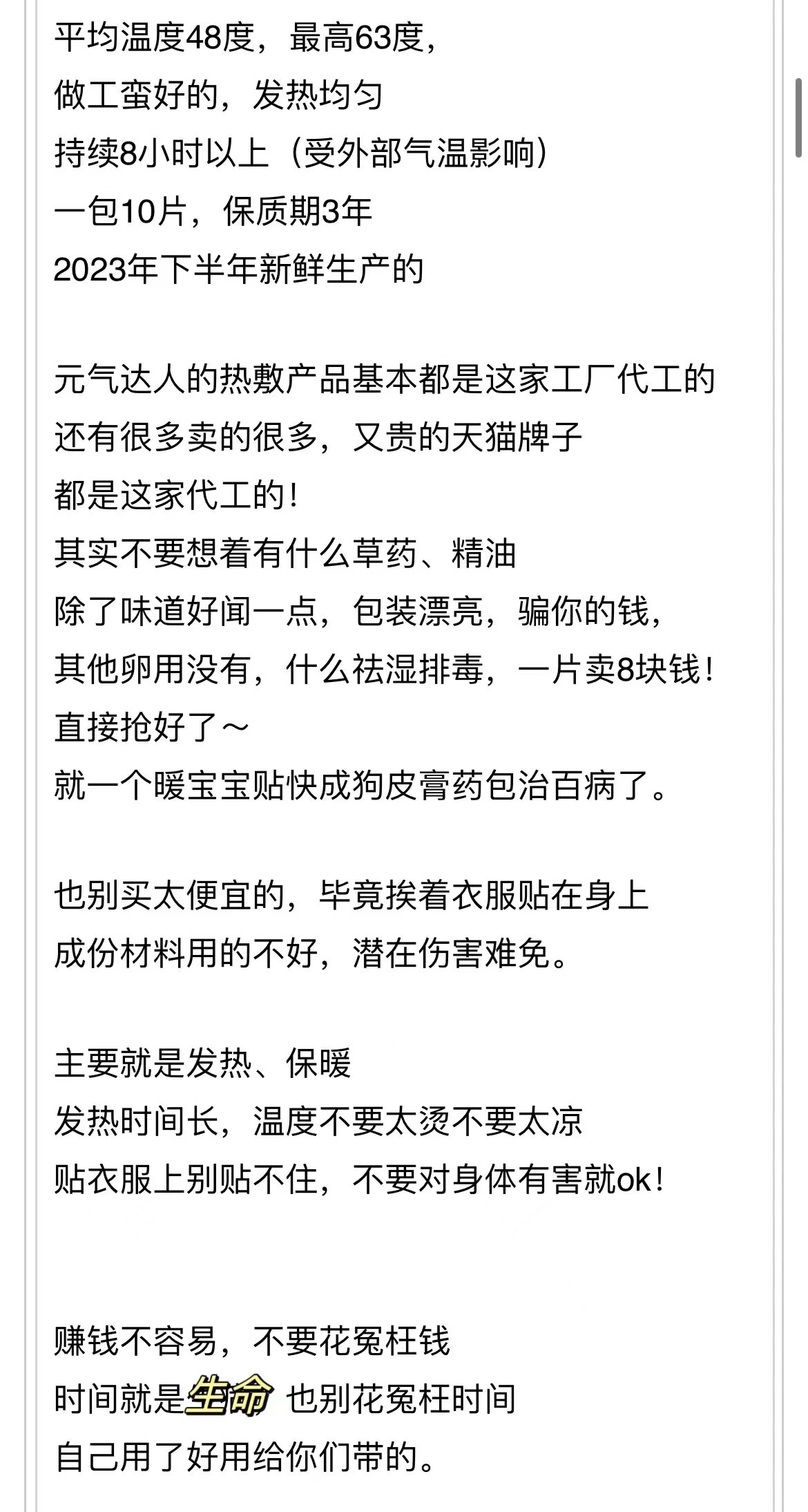 好多包装上自己能暖12小时,能热5小时都烧高香