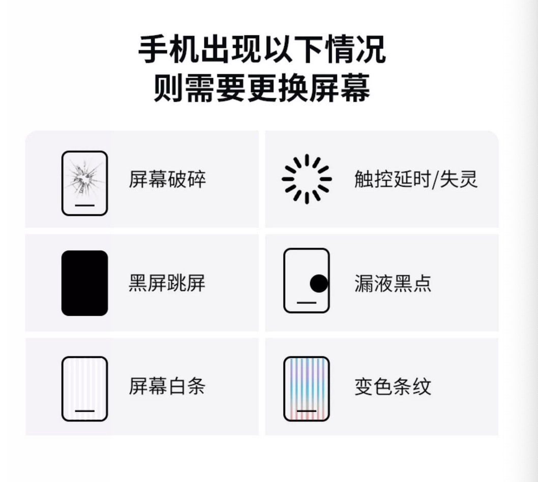 注意:维修服务报价适用符合现场维修的屏幕故障,无法现场维修需要返厂维修的产品价格另行调整。