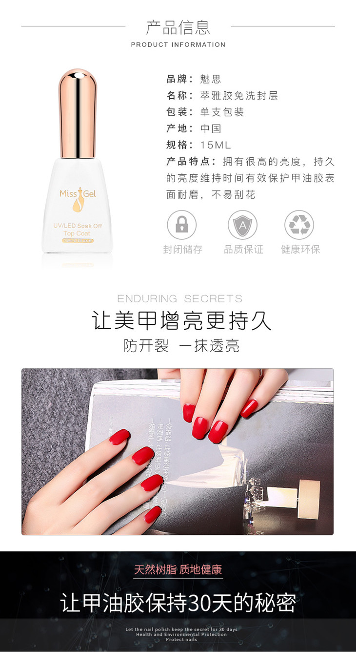 魅思萃雅胶 15ml免洗封层