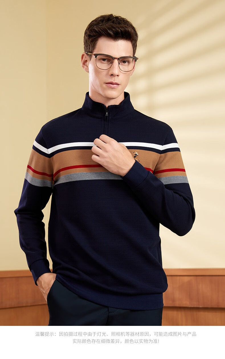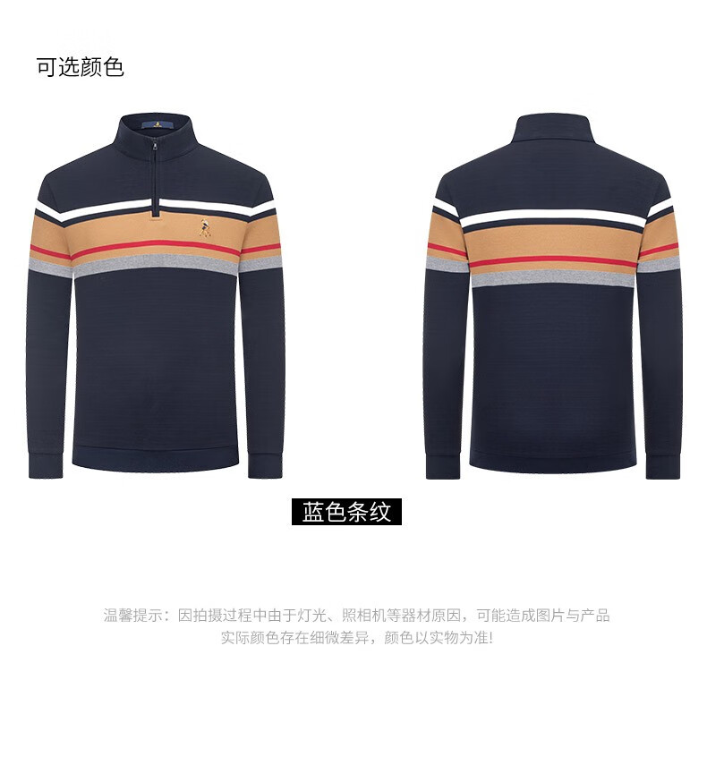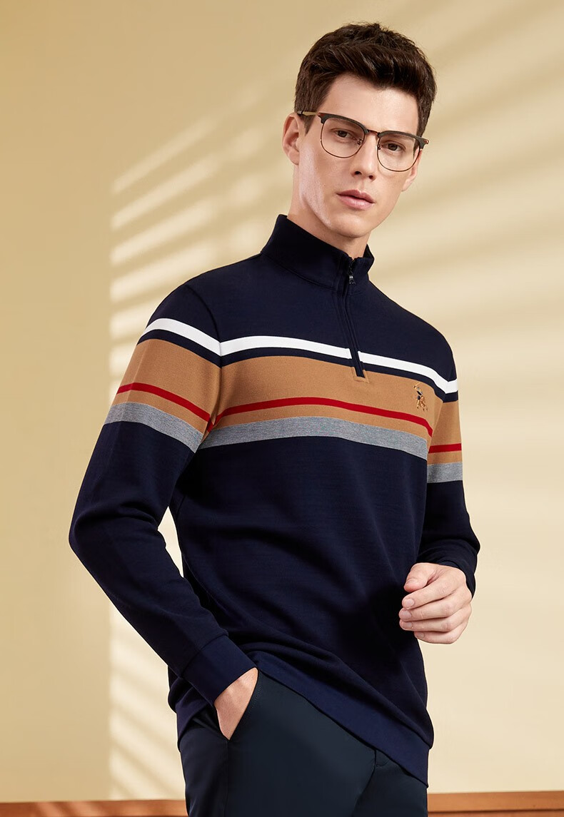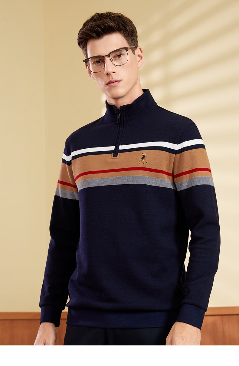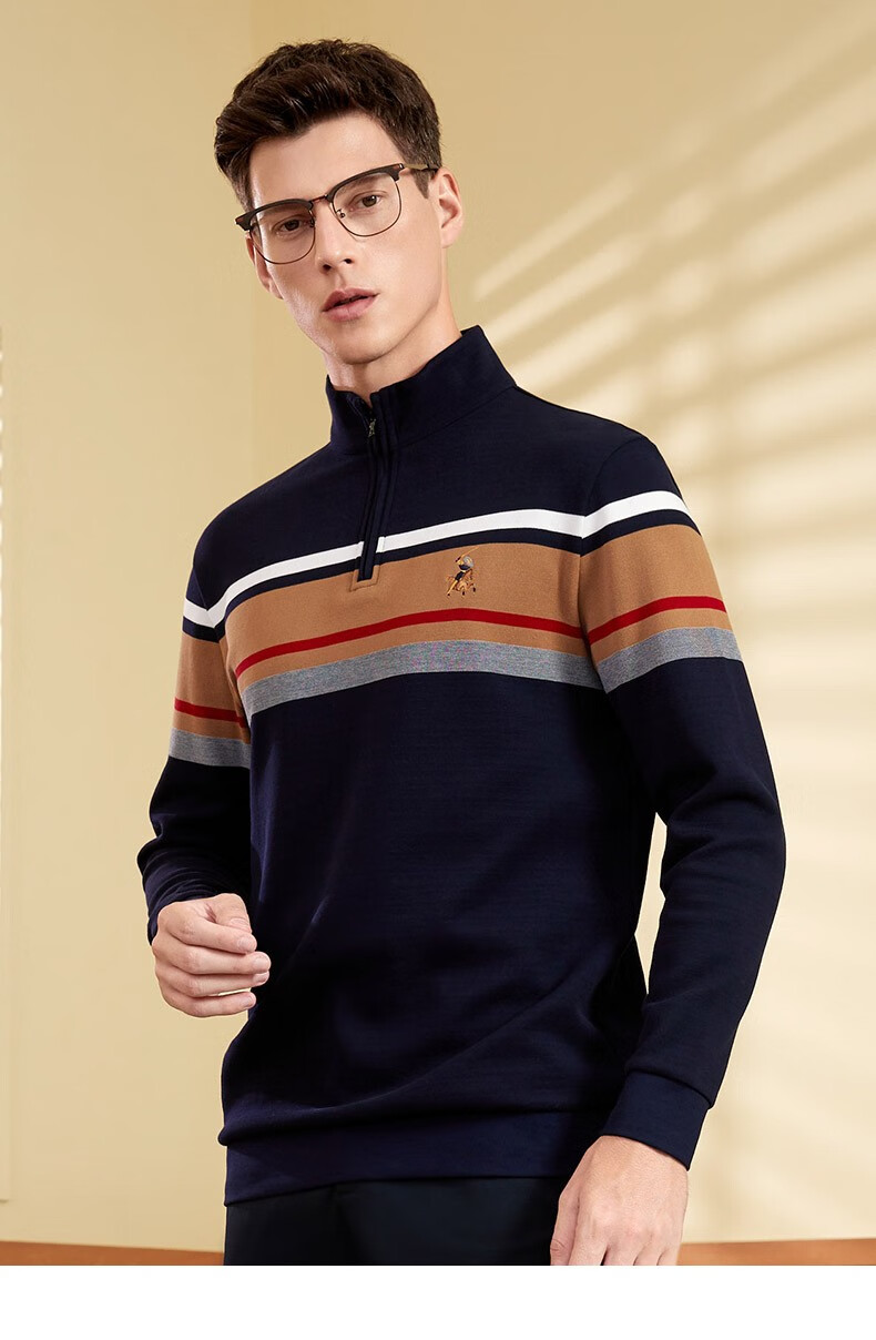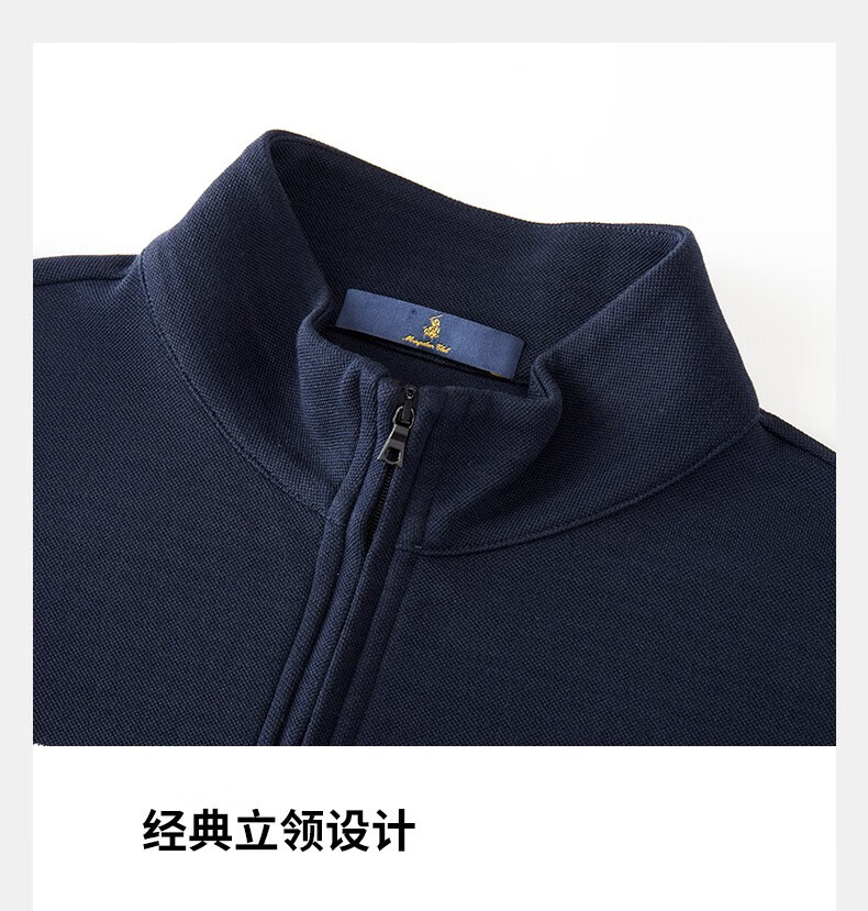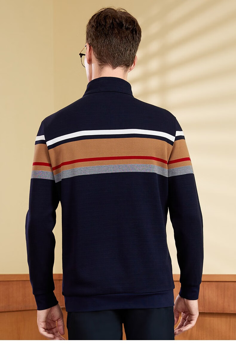 【名盾】MD名盾男士立领长袖上衣纯棉商务休闲撞色条纹针织衫11582