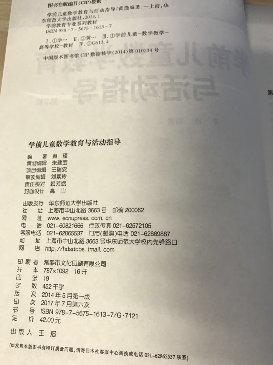 学前儿童数学教育与活动指导 黄瑾 第3版 华东师范大学出版社