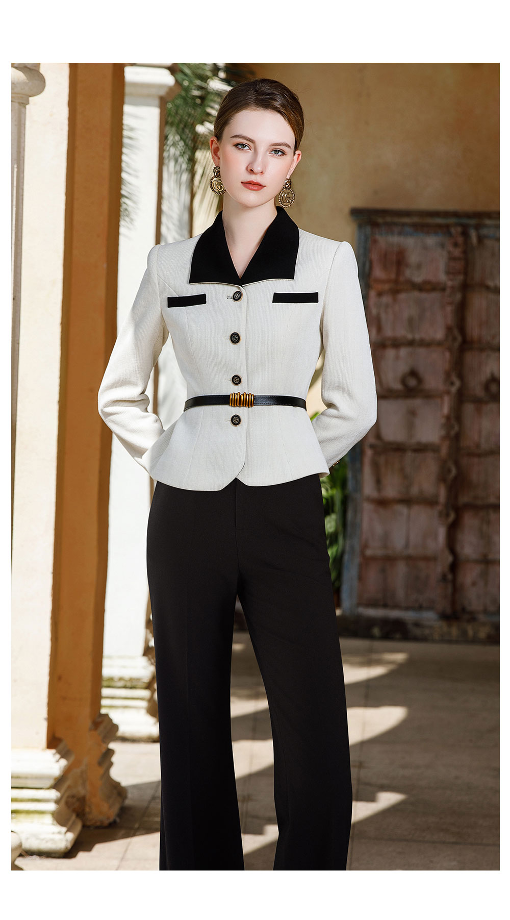 IWY/轻熟风撞色套装女秋冬收腰外套长裤两件套气质通勤职业装C1682+P2357