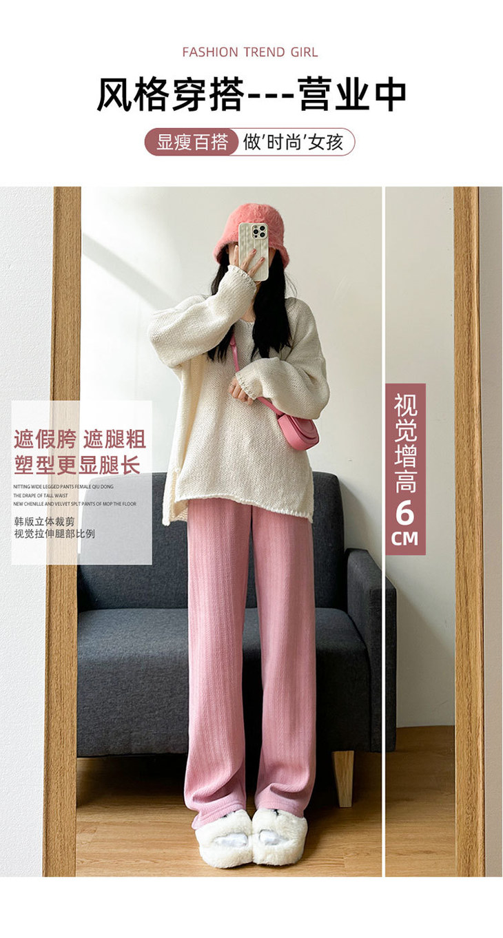 【梨形救星!秋冬阔腿裤】麦穗雪尼尔阔腿裤,裤子秋冬款,直筒休闲加绒加厚保暖棉裤,冬季外穿