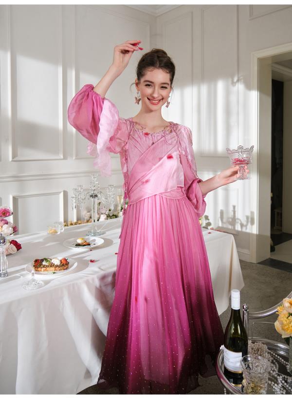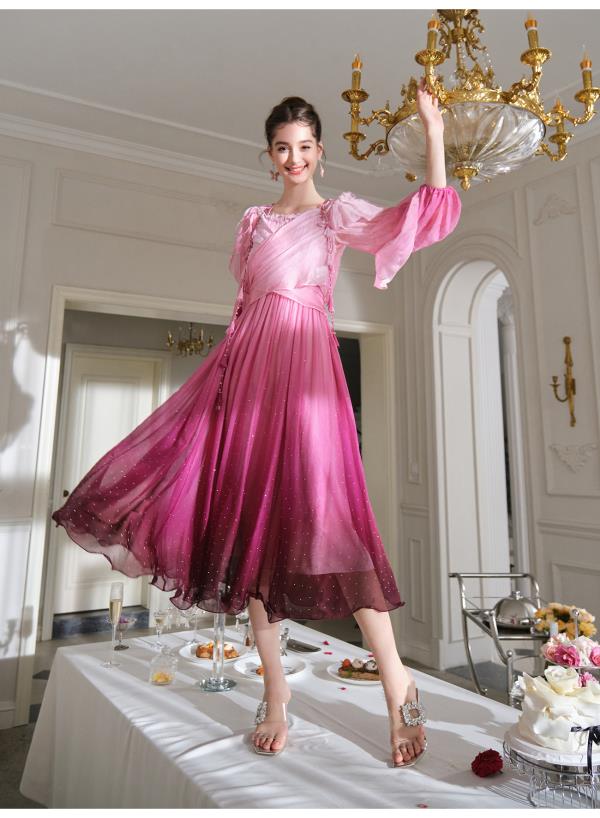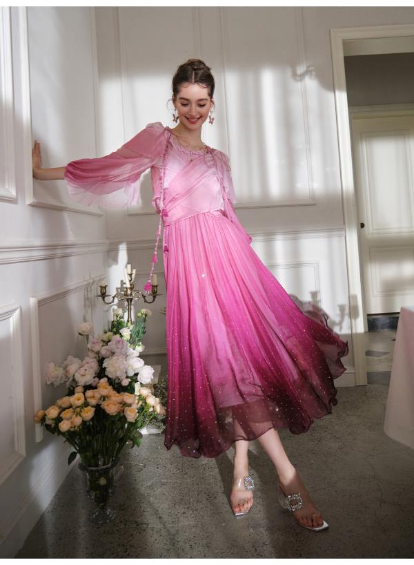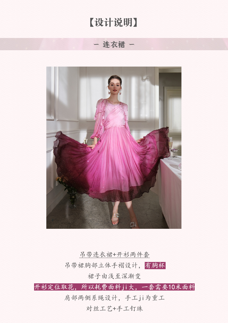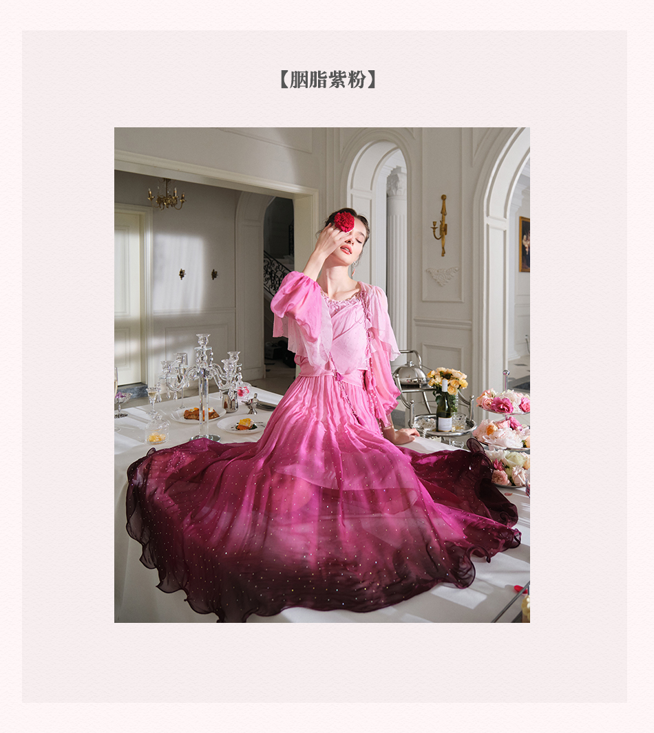 BeQueenStory【烈焰玫瑰】重工高定100桑蚕丝连衣裙开衫2023新款