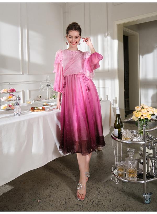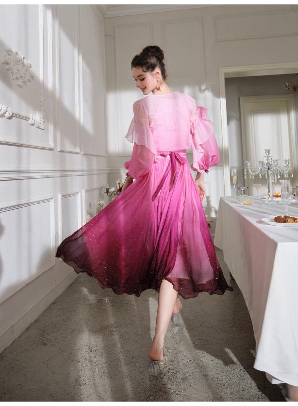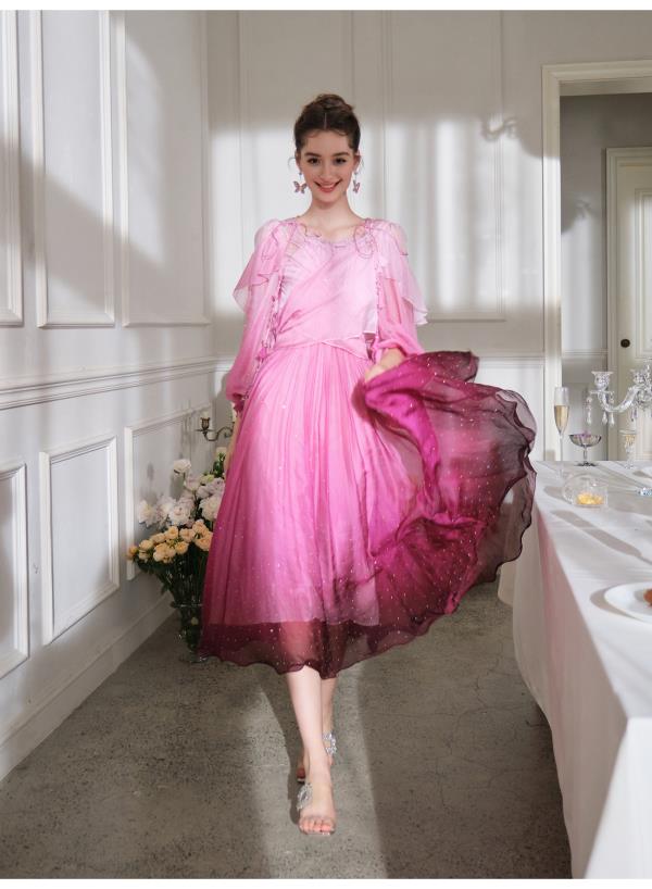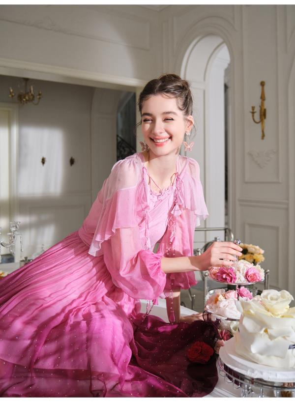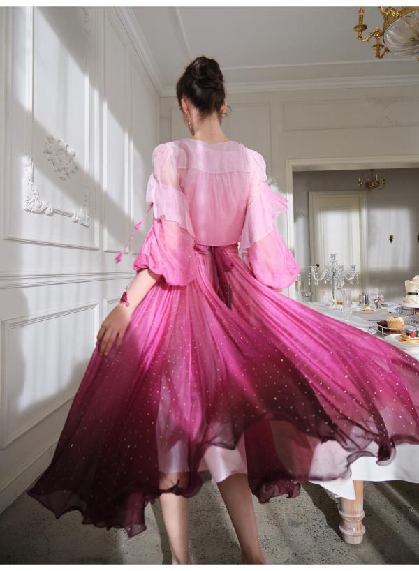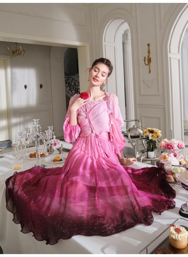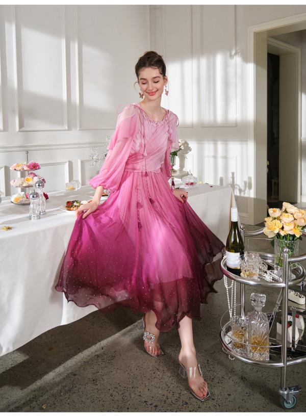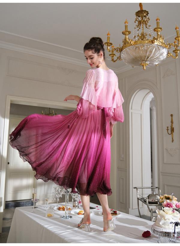 BeQueenStory【烈焰玫瑰】重工高定100桑蚕丝连衣裙开衫2023新款