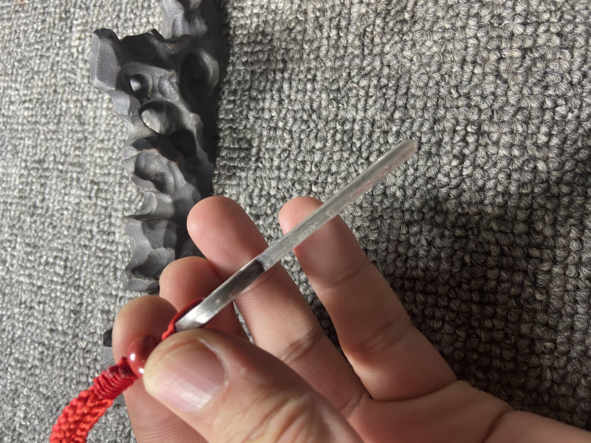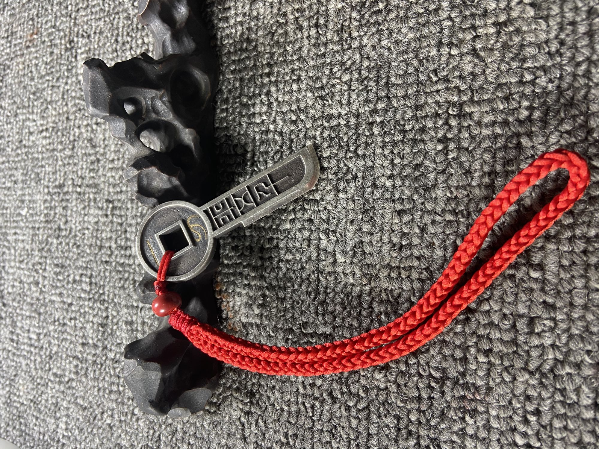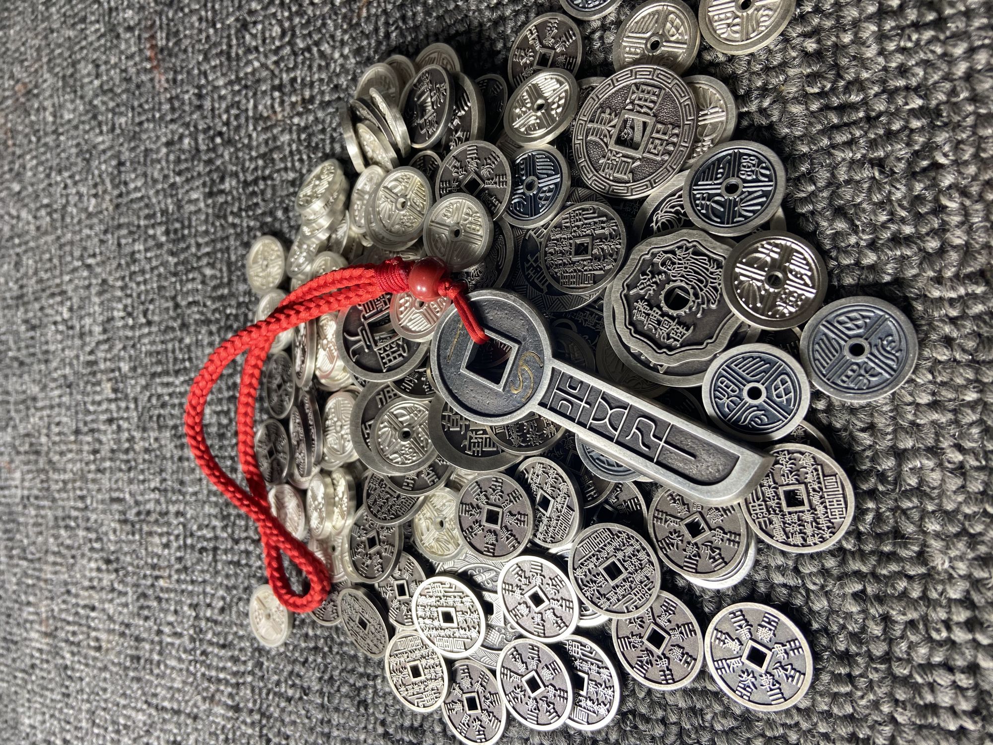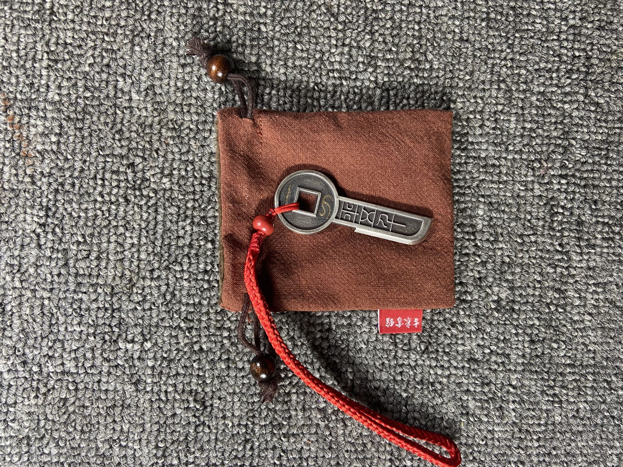 930矿银制作,高约72.5毫米,方孔钱币直径约29毫米,底部宽约14毫米,厚约3.5毫米,孔径约7毫米,重约31.5克,镶嵌纯金金丝重约0.3克。(以上数据手工测得,手工作品有少许误差,请知晓),