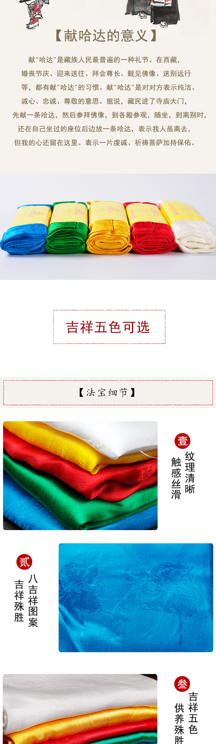 梵音苑 精品人造丝八吉祥五色哈达 300cm *60cm (五色一套)
