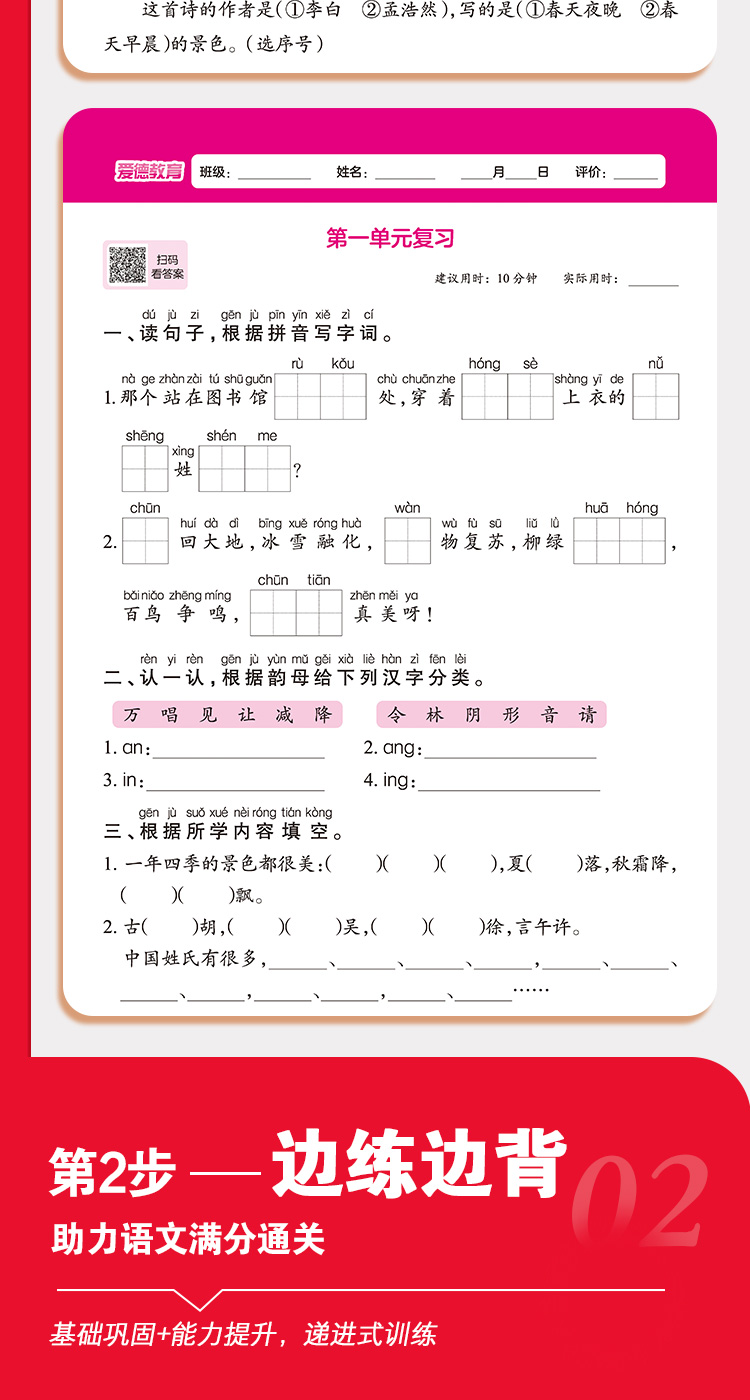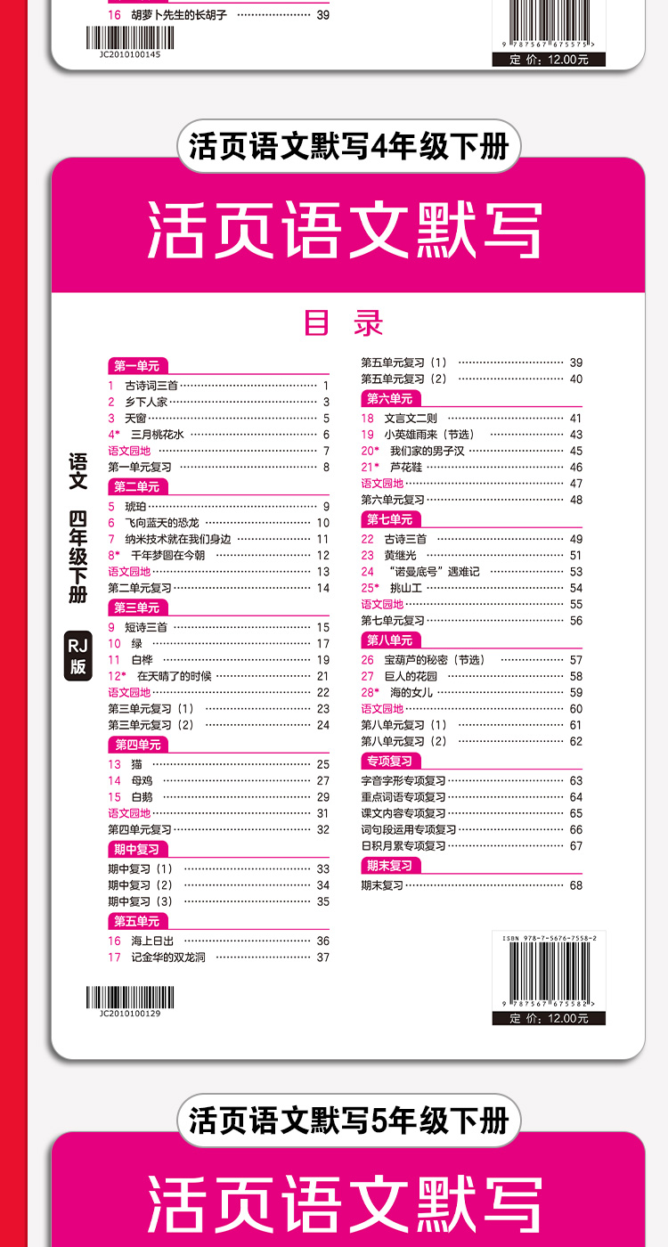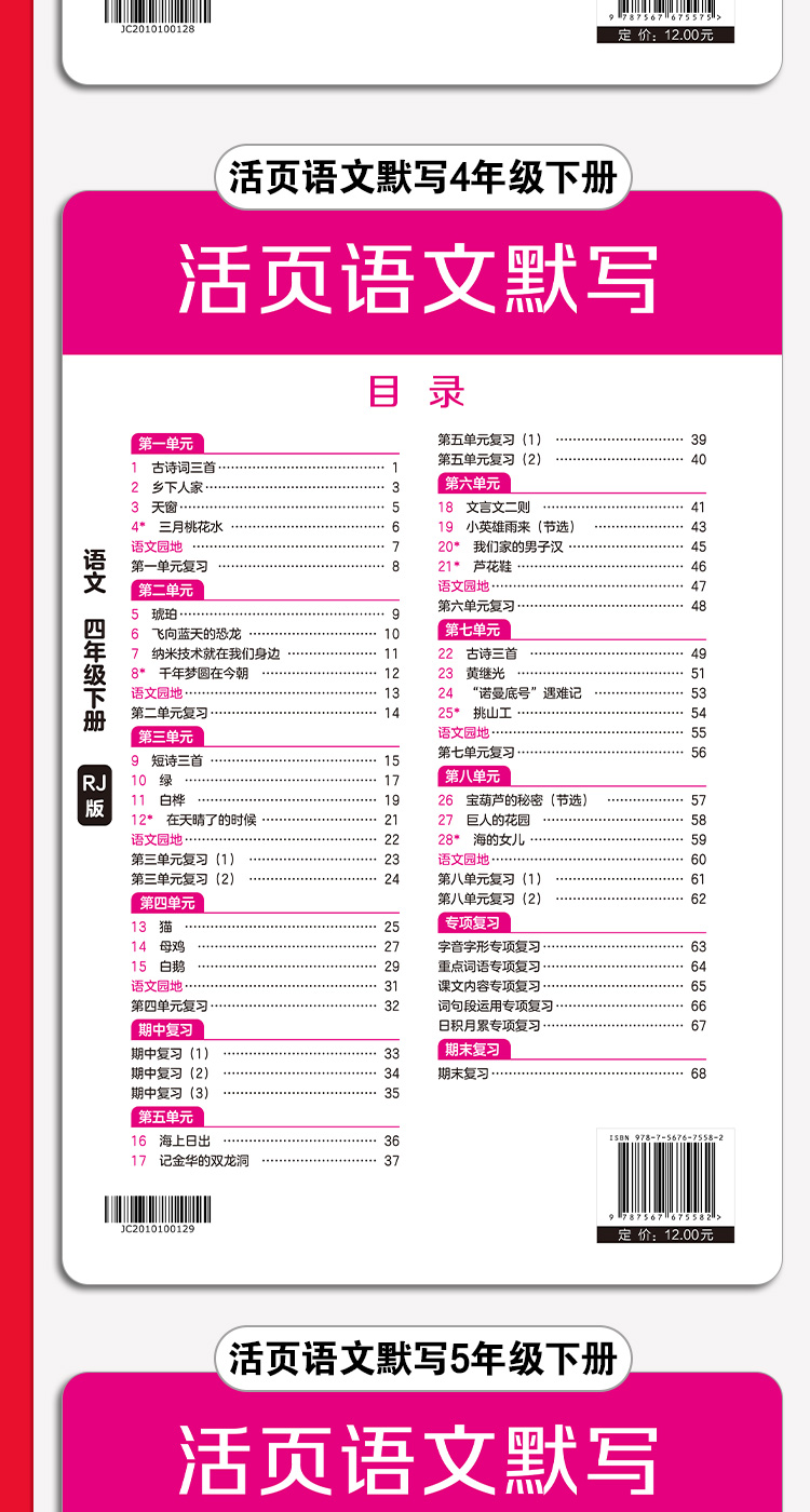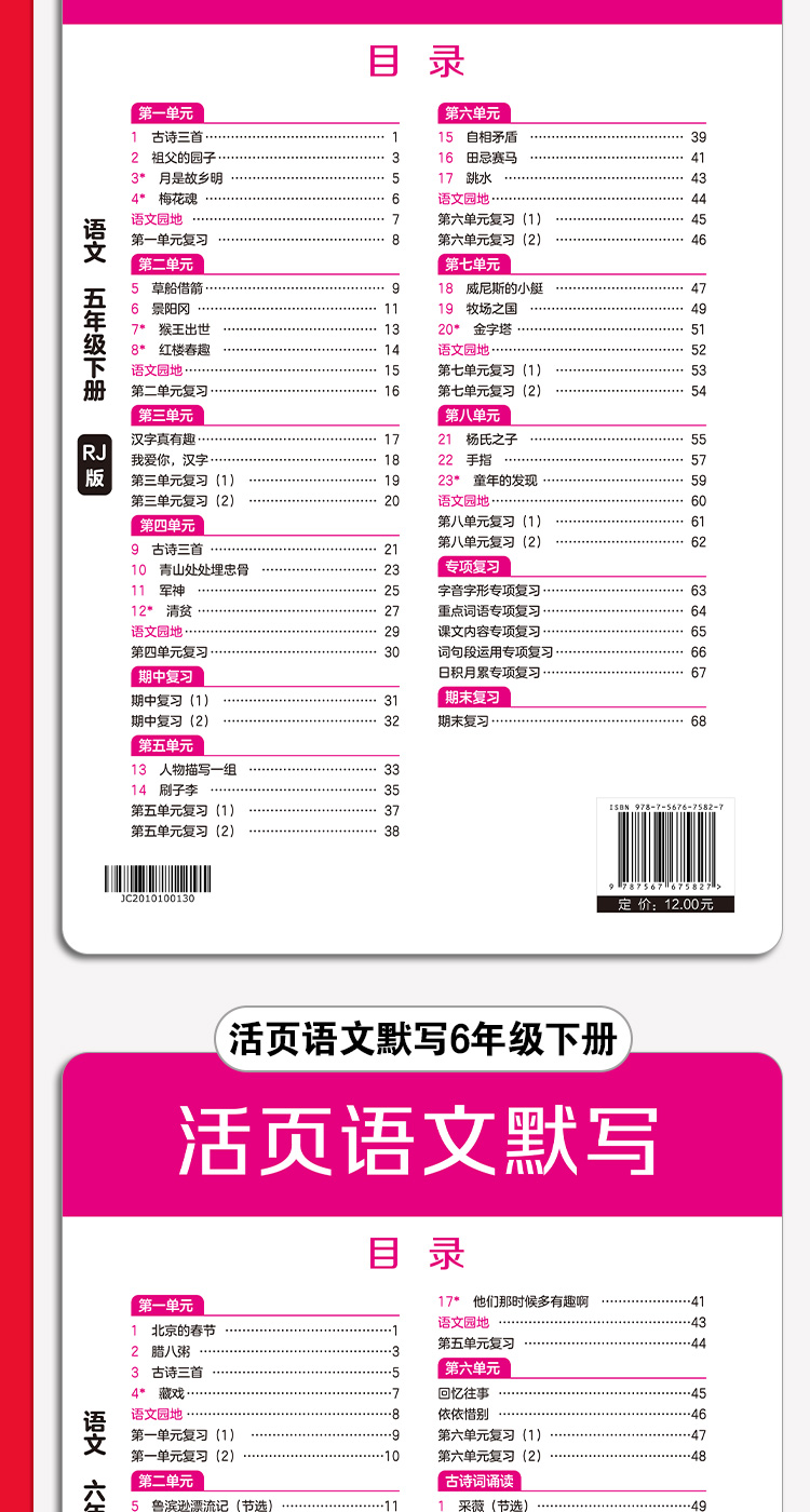 2026春活页语文默写下册下学期1~6年级教材同步背书练字本