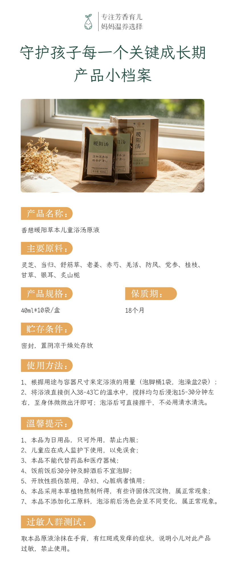 「暖阳汤」XIANGQI香憩︱暖阳汤草本儿童浴汤原液 10袋/盒
