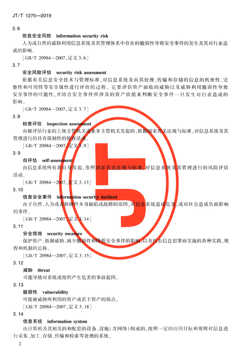 书名:交通运输行业信息系统安全风险评估指南(JT/T 1275—2019)