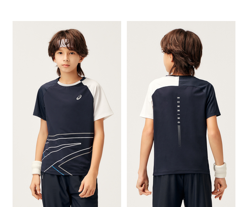 ASICS/亚瑟士童装2024年秋季新款男女童运动休闲短袖运动速干T恤