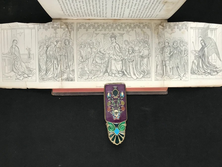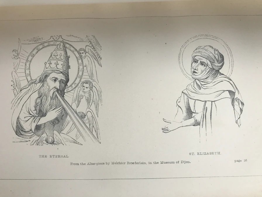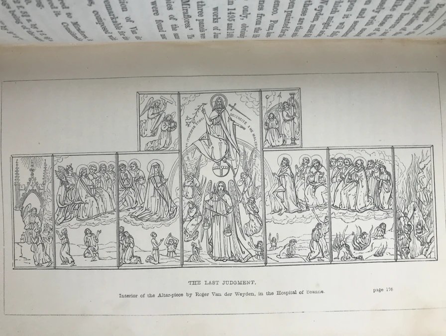 1857年 早期佛兰芒派画家 15页版画插图(含1幅展开图) 全真皮精装大32开 五层竹节背 环衬压花暗纹