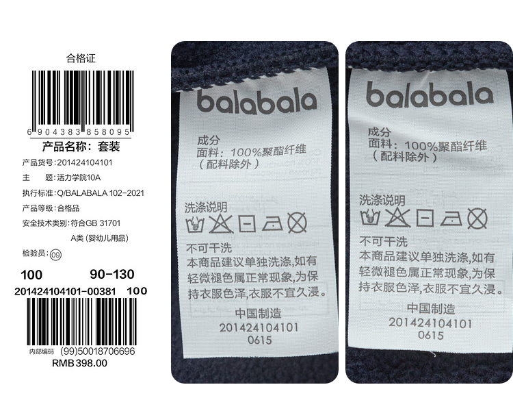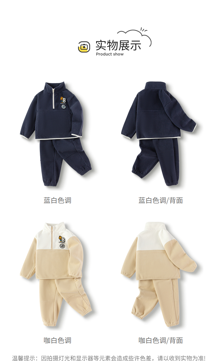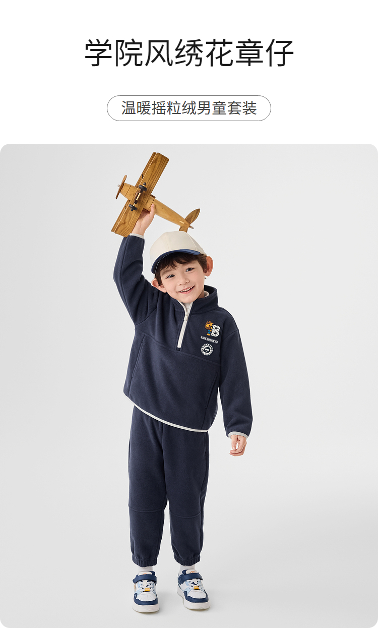 巴拉巴拉童装儿童套装男童秋冬摇粒绒两件套学院风小童百搭休闲装