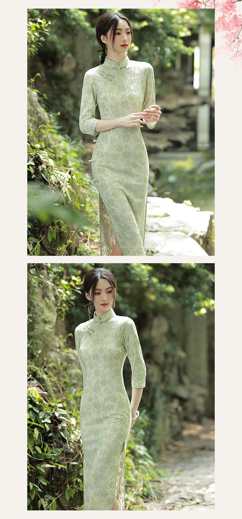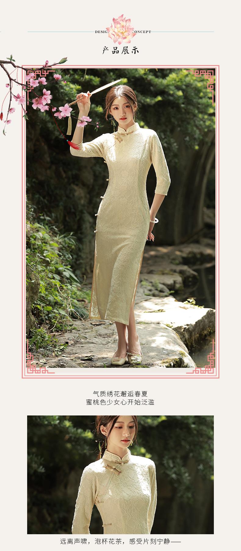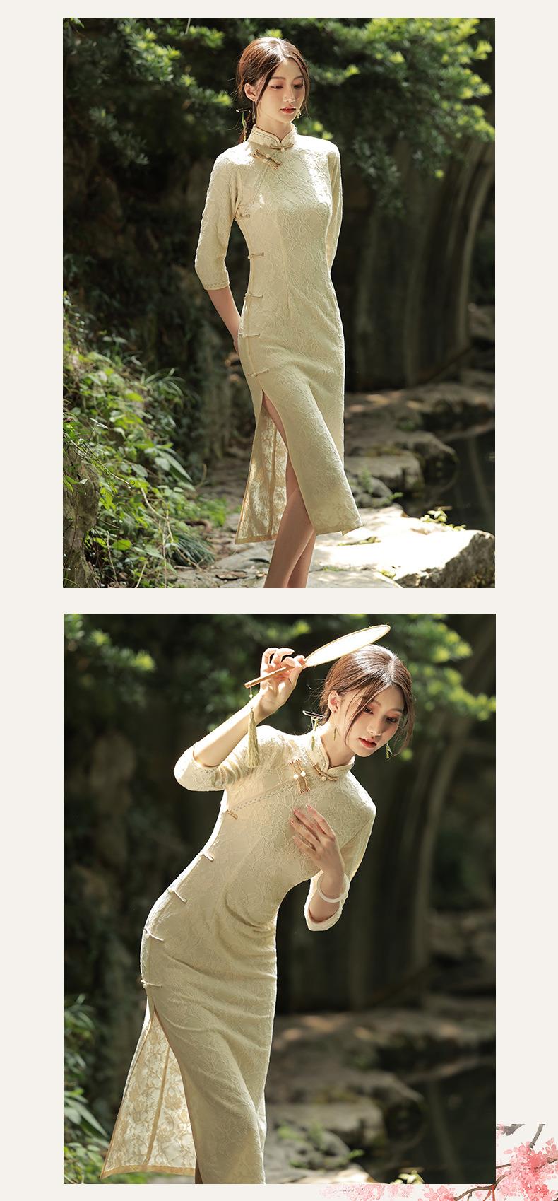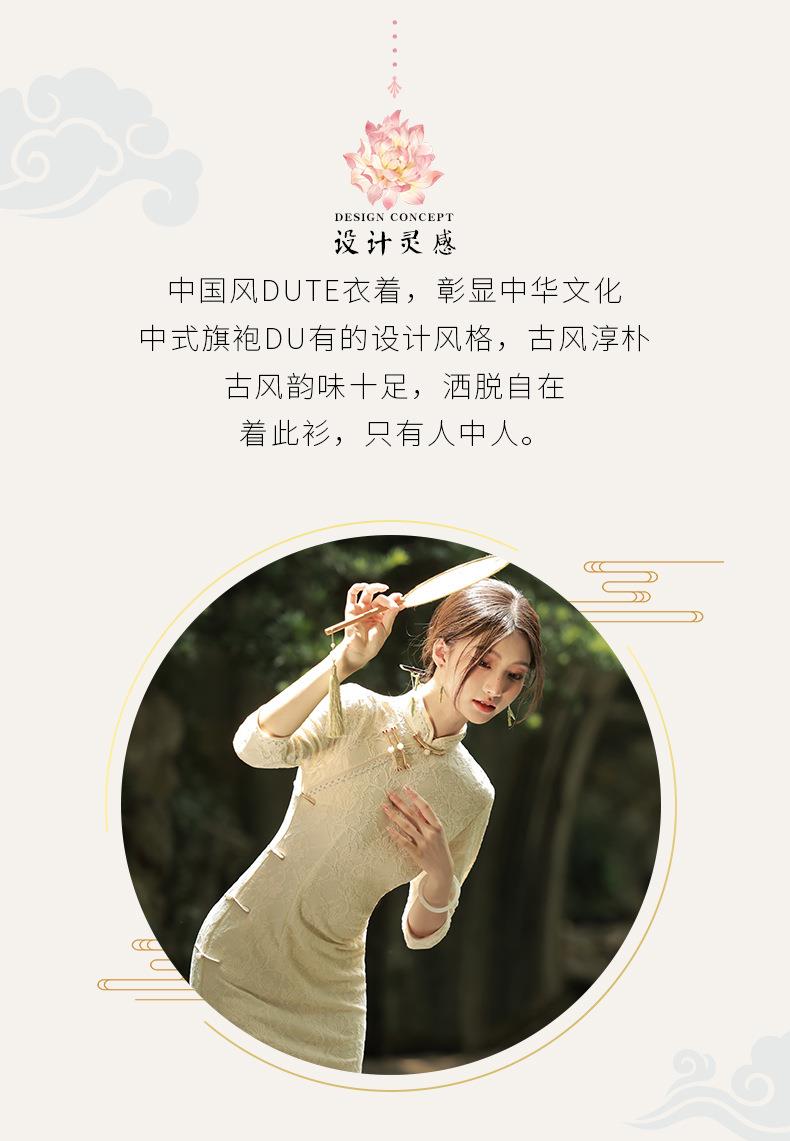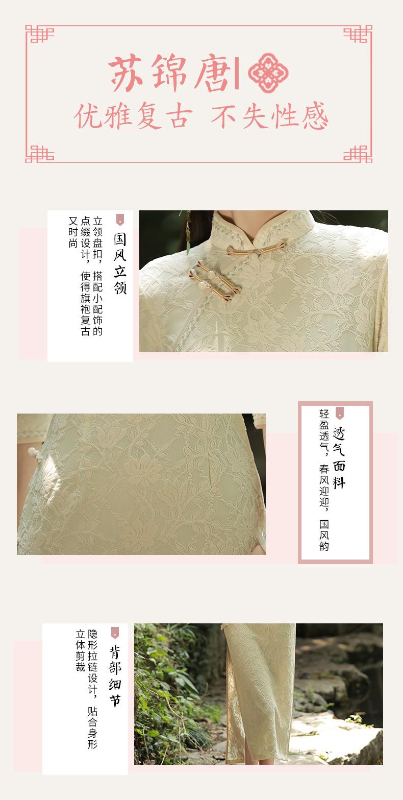 2023秋季新款复合蕾丝花边长款旗袍连衣裙清新文艺少女年轻款旗袍