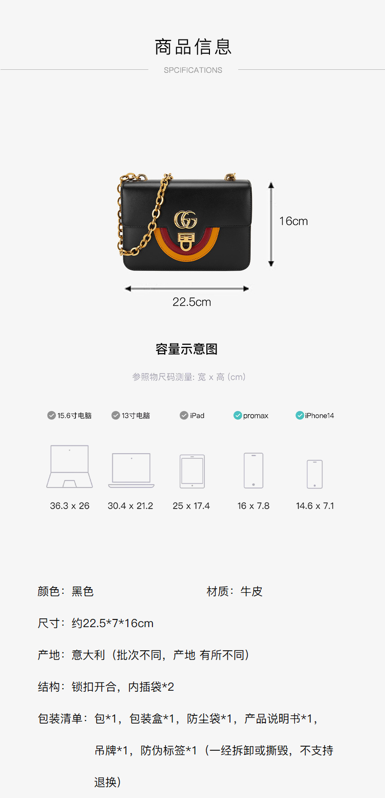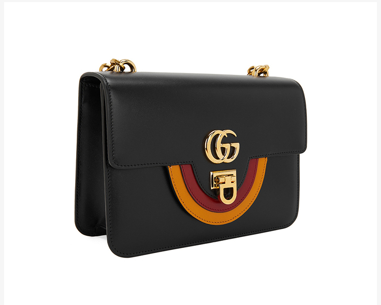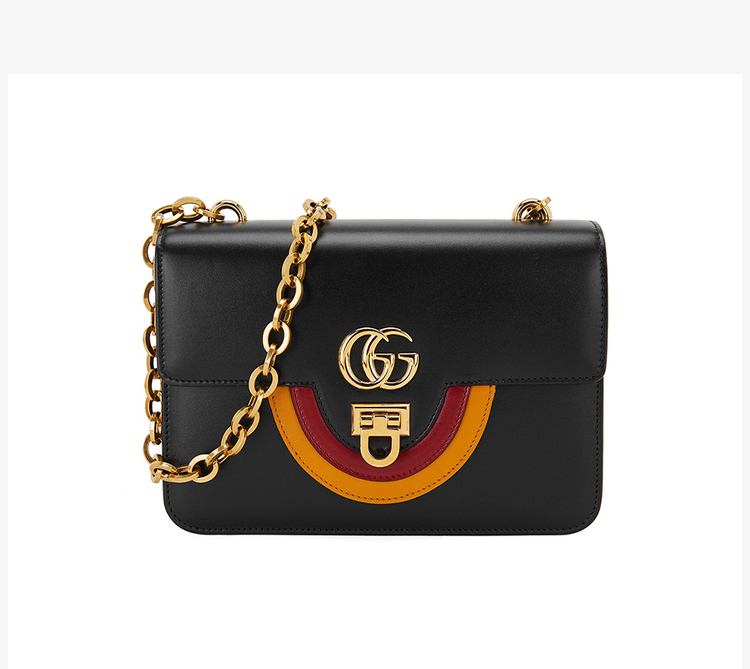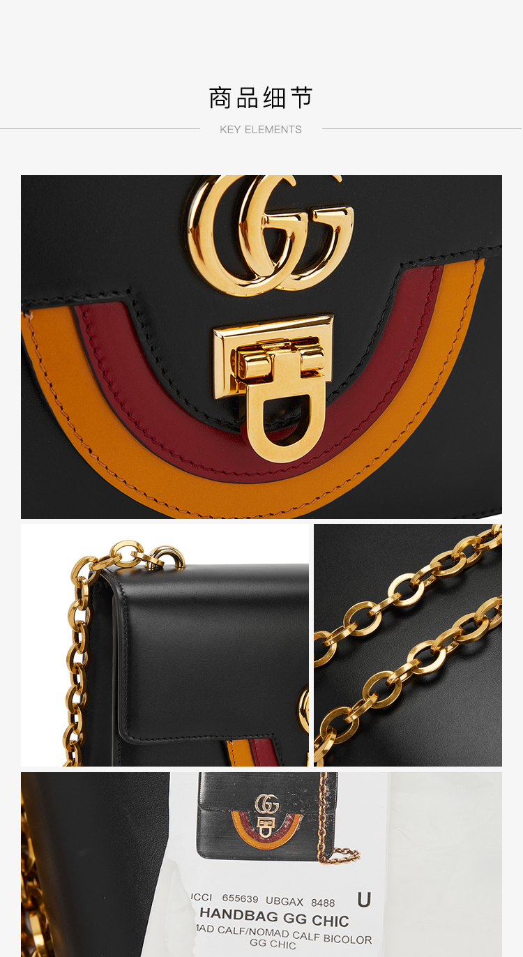 GUCCI 古驰 女包 SS23女士牛皮双G锁扣单肩斜挎包链条包 黑色655639UBGAX