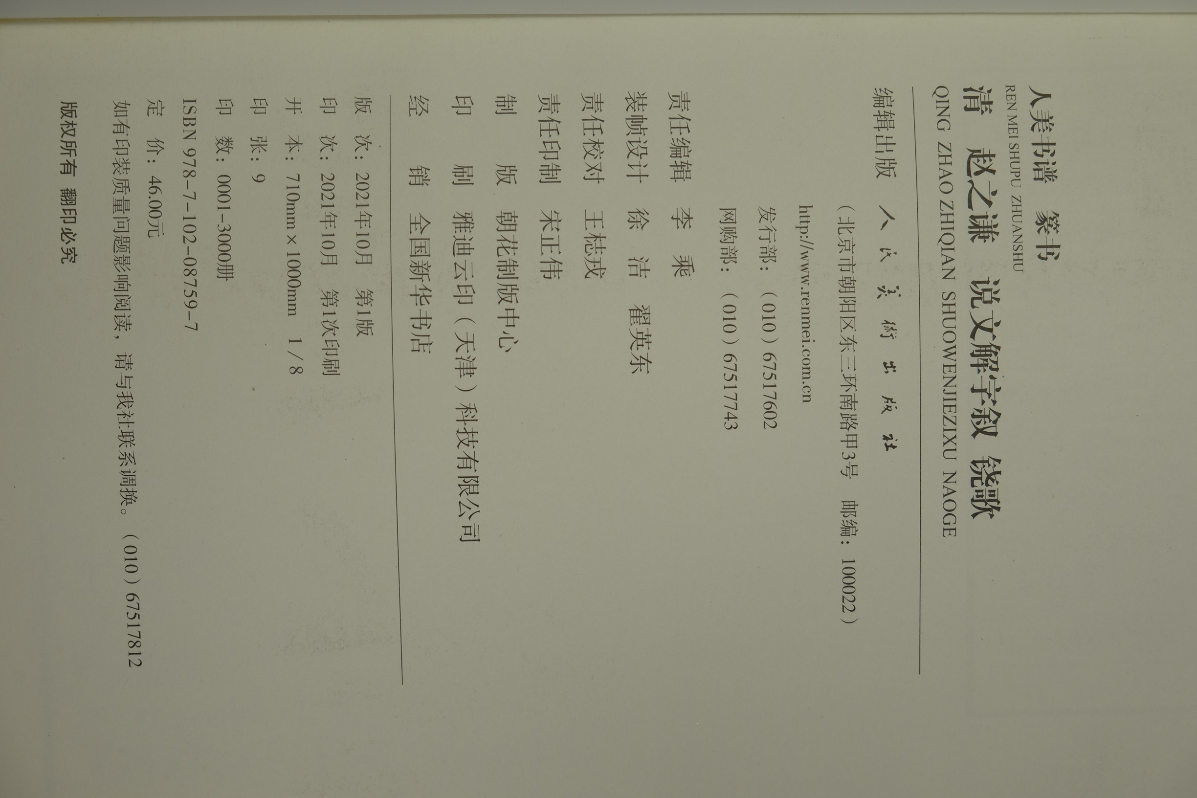 人美书谱 篆书 清 赵之谦 说文解字叙 铙歌【现货包邮】RM0076