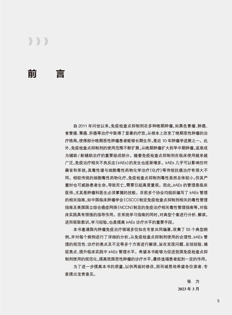 肿瘤免疫治疗思路及用药安全 张力 临床典型病例诊疗解析 免疫检查点抑制剂使用irAEs管理规范解读 人民卫生出版社9787117352666