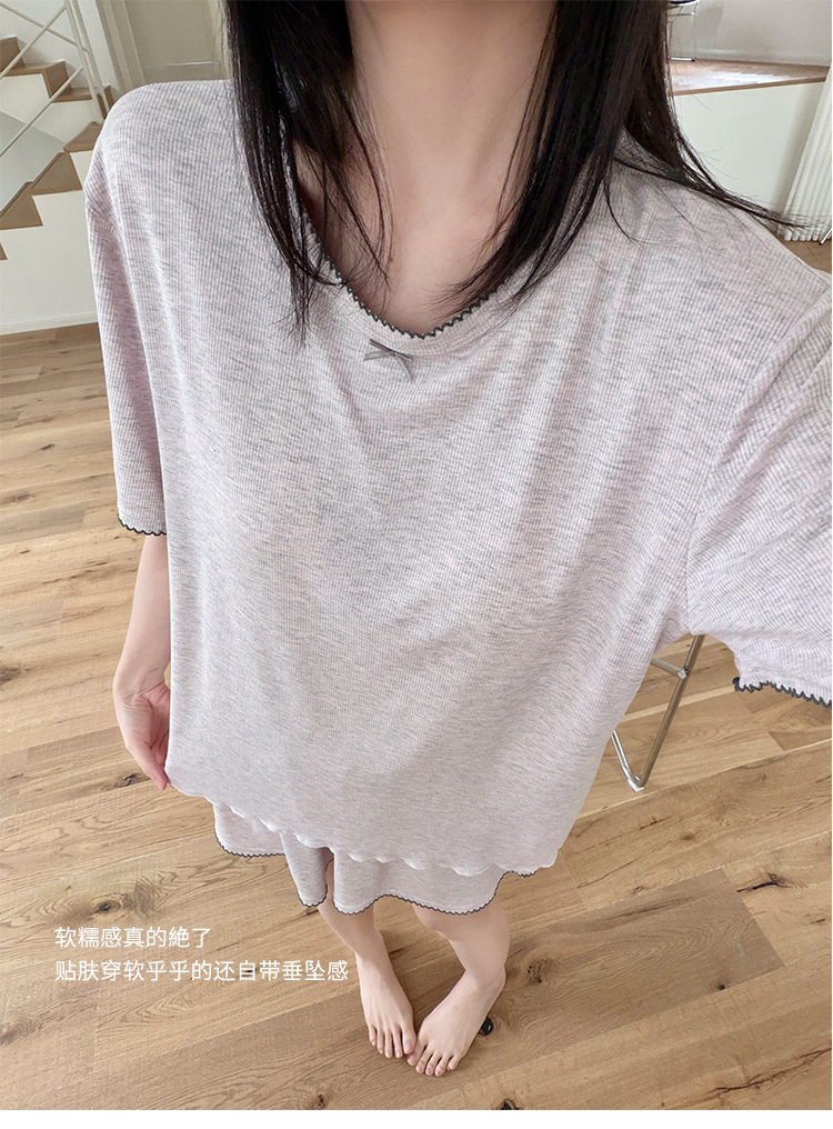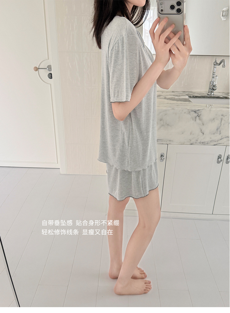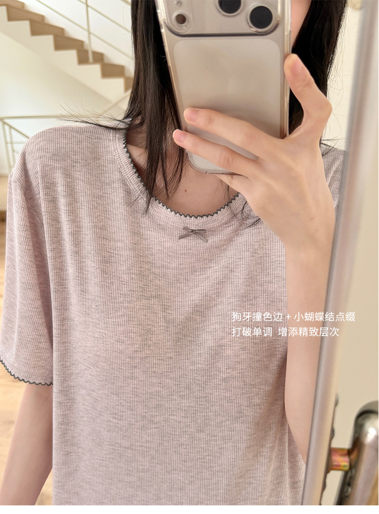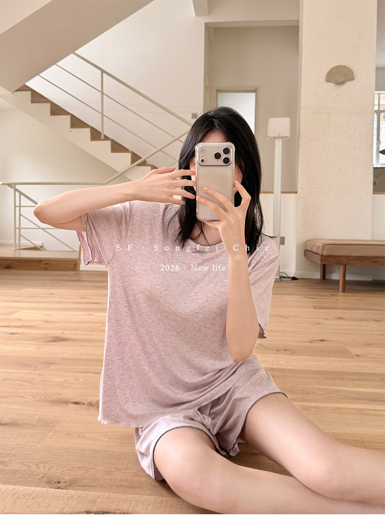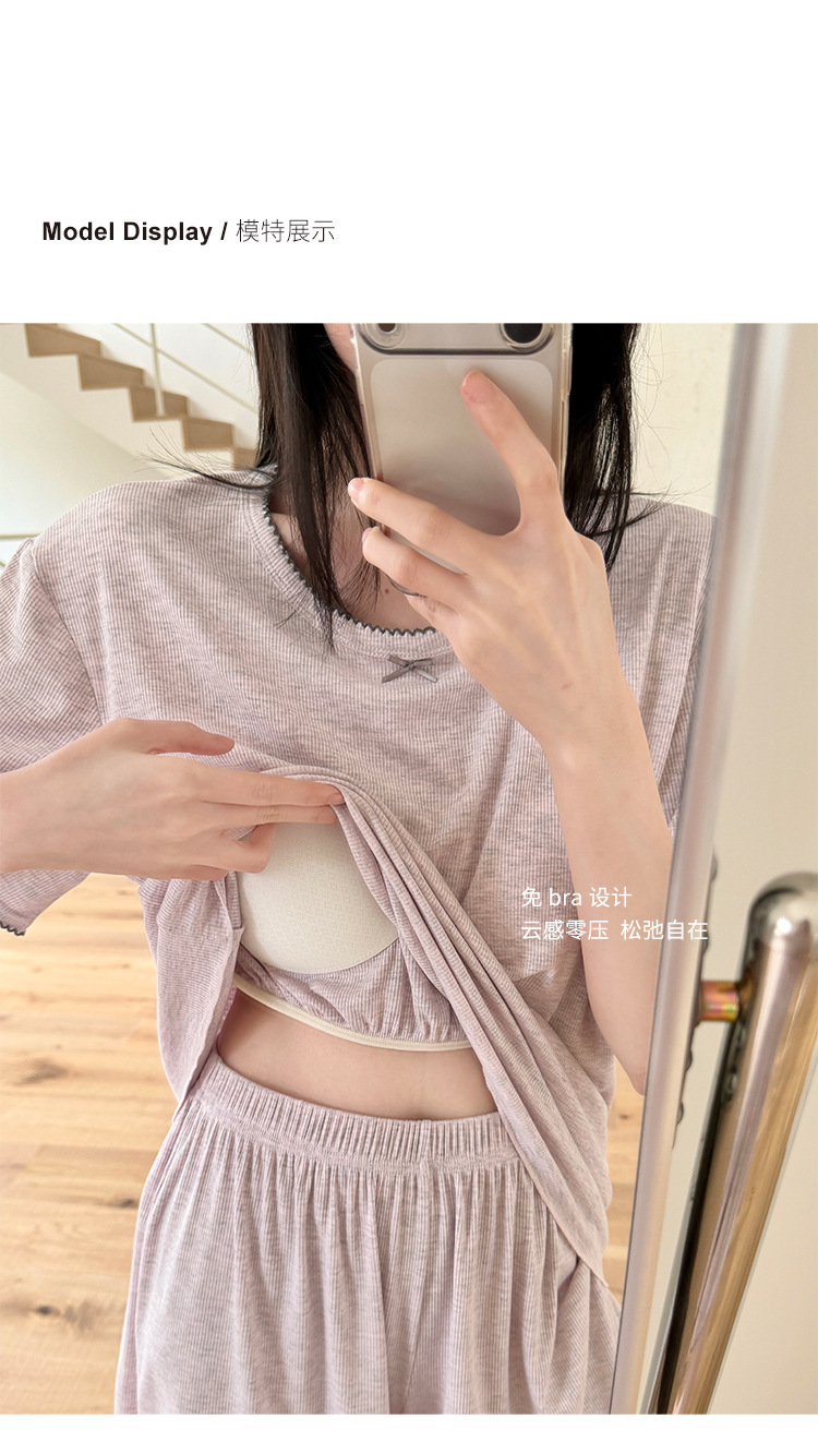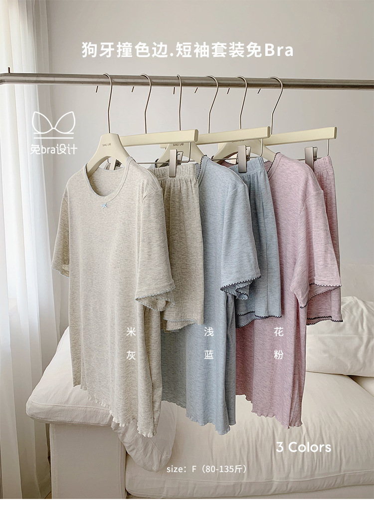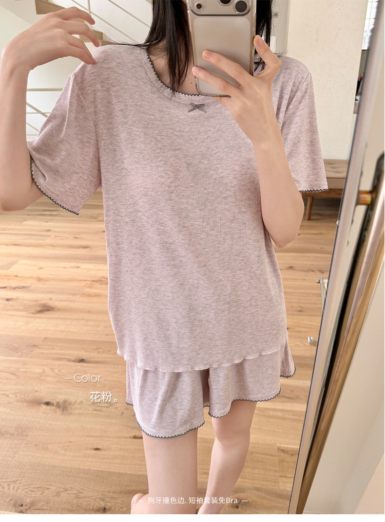 带胸垫一体式莫代尔睡衣套装 可外穿清凉家居服
